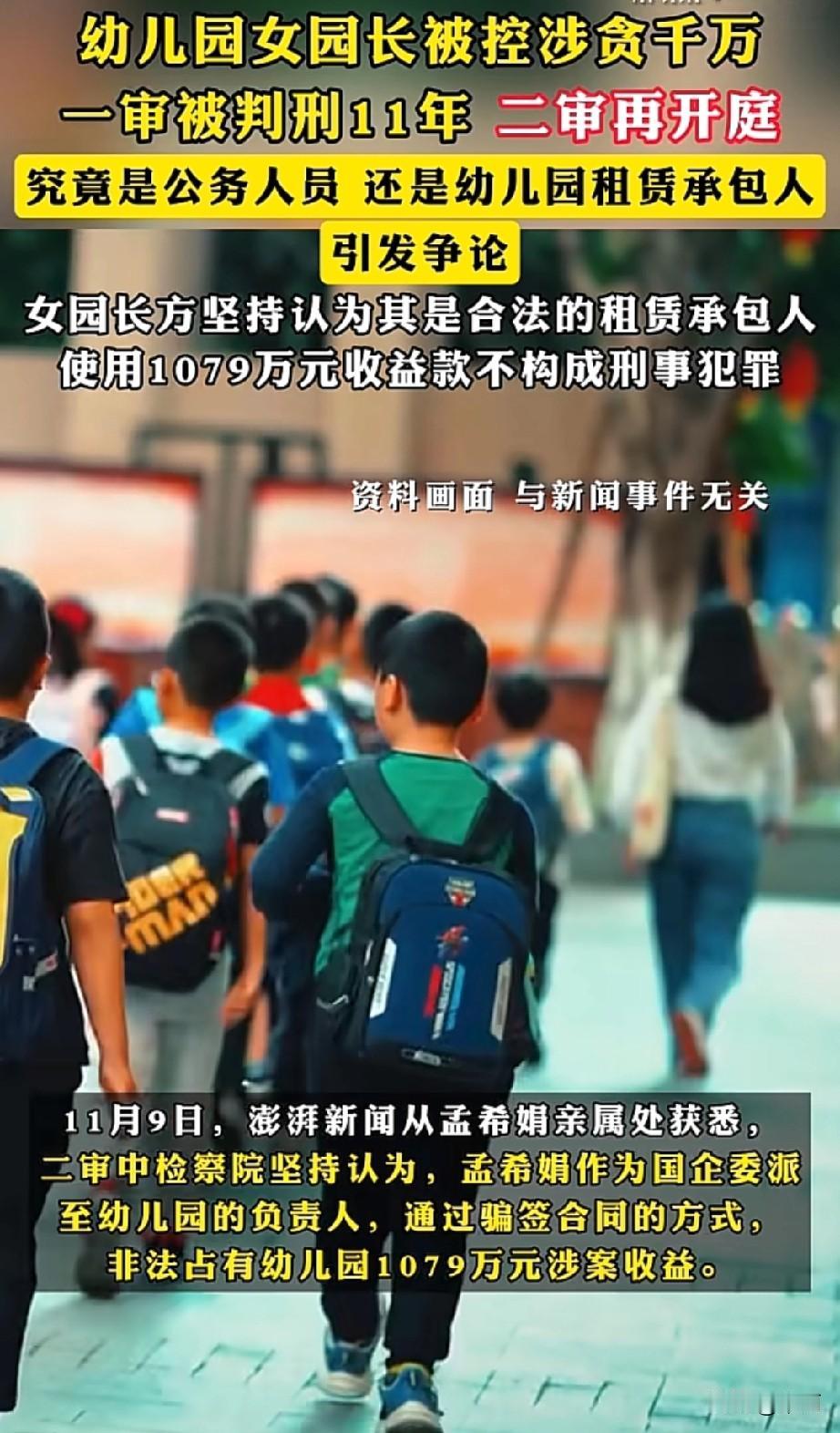 陕西咸阳偏转幼儿园原园长孟希娟被控贪污1079万元,这事挺受关注。2025年1月她一审获刑11年,法院认定她是国企委派的公务人员,签的承租合同只是为办许可证,不算真租赁。 但孟希娟不服上诉,说自己是合法承包人,合同写了自负盈亏,用资金不算犯罪,还说当地这种“租赁园”不止一家。今年11月3日二审再开庭,双方还在争身份问题,没当庭宣判。 其实核心就是“身份定性”,是公务人员还是承包人,直接影响案件结果。国有资产的管理边界确实得理清,既不能让公共利益受损,也得保障合法经营者的权益,等着法院的最终公正判决吧。