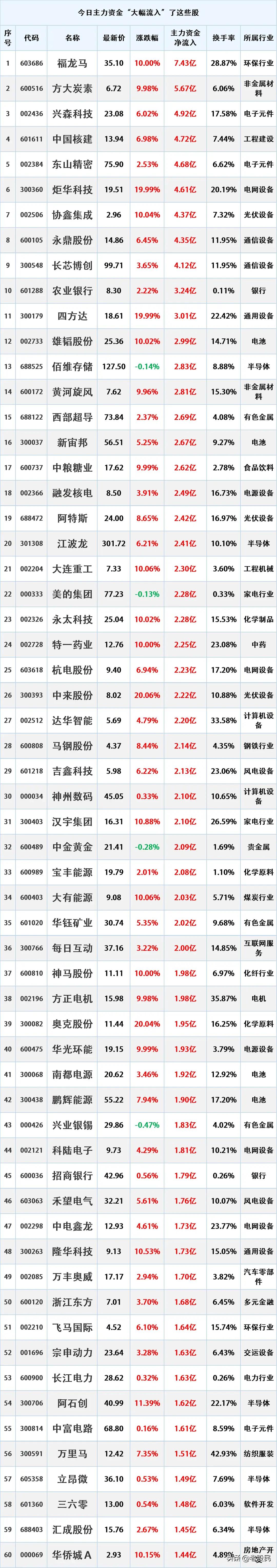 尾盘资金入场,11月11日主力资金大幅流入的股票名单。 资金流入是指在一定时期