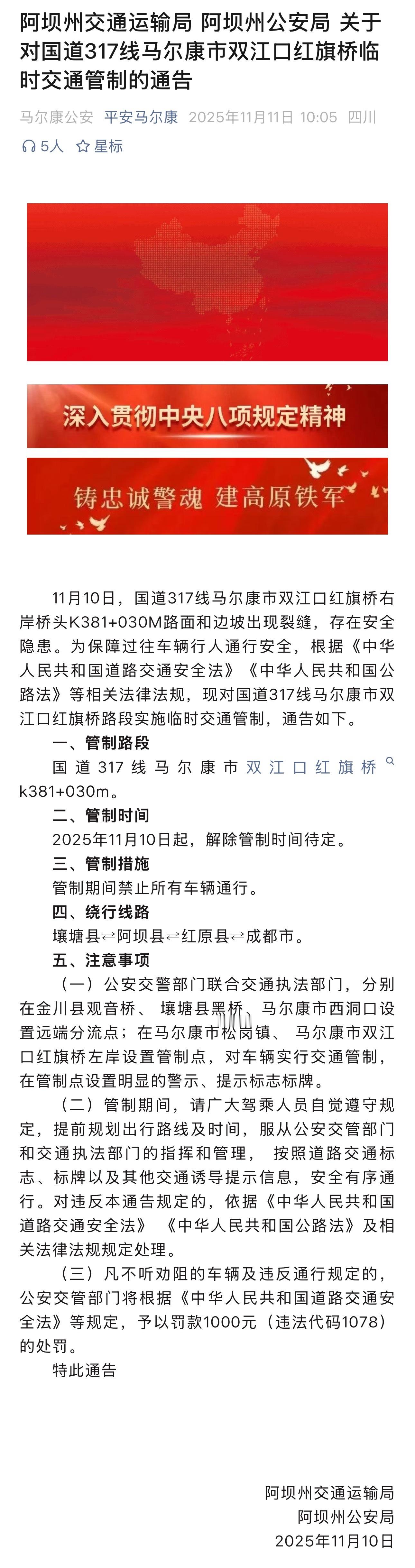 四川阿坝红旗特大桥发生垮塌,承建单位负责人要睡不着觉了!要知道今年1月份大桥才合