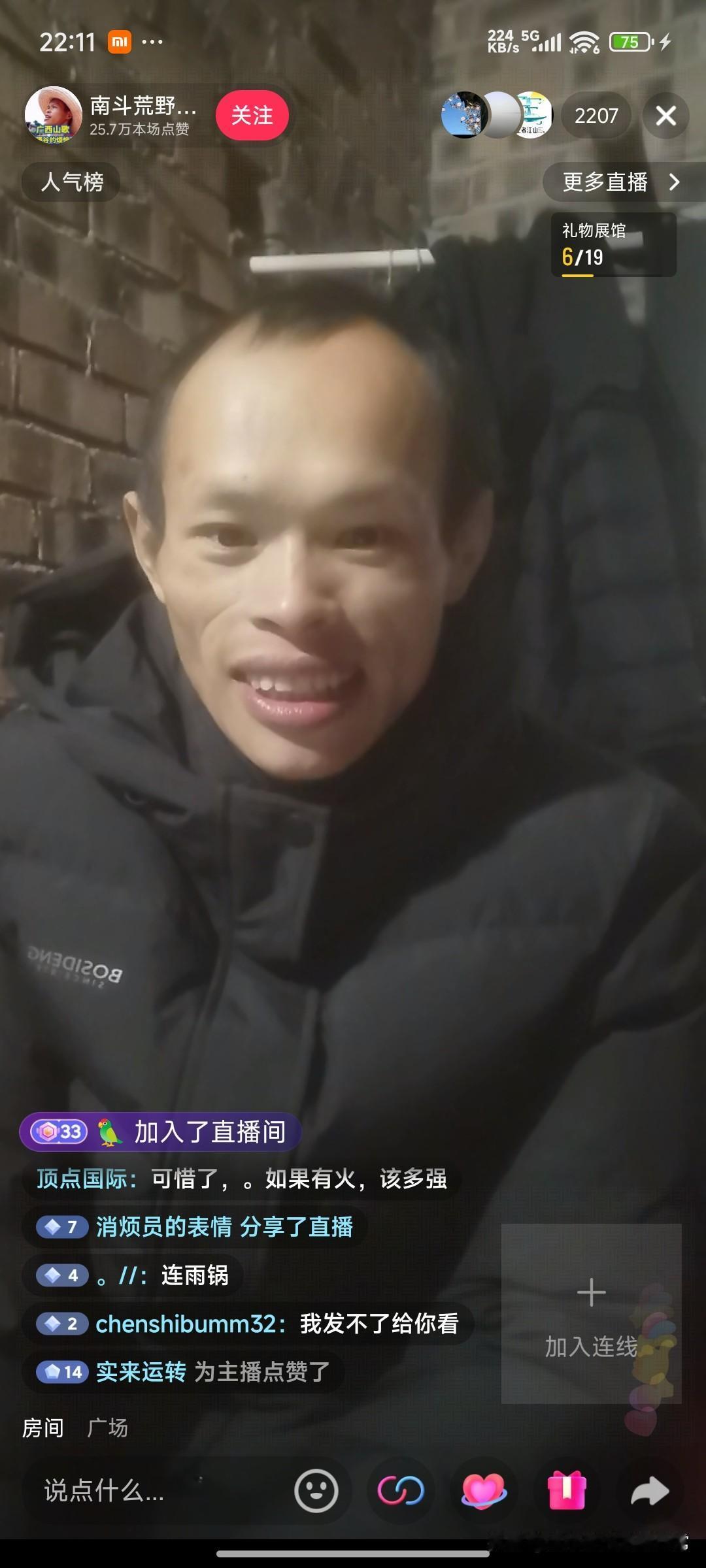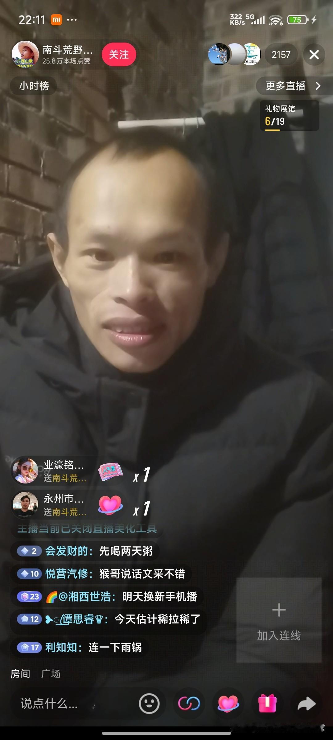 退网后首播的猴哥,让数万网友破防! 半夜刷到个直播,直接看愣了——那个消失好一阵的“猴哥”,裹着起球的黑棉袄蹲在砖墙角,镜头糊得像蒙了层雾,直播间却挤了2000多人,满屏“猴哥你可算回来了”。 他嘴有点歪,说话漏风,却把“今晚没吃饭”讲得像说段子:“肚子空得能回音,等天亮捡俩瓶子换馒头”。粉丝急着刷礼物,他偏摆手:“你们看我乐呵就成,别破费”。 穿的外套洗得发白,背景墙掉渣,可这糙汉的碎碎念里,全是咱普通人的影子:饿了扛着,累了蹲会儿,再难也能跟人贫两句。 有人骂“装惨博眼球”,有人说“看见他就像看见加班到深夜的自己”——你说,这到底是卖惨,还是咱普通人的日子,本就长这样?