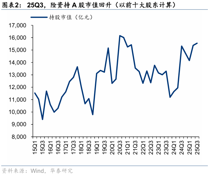 规模:25Q3,险资持股规模环比Q2小幅回升;