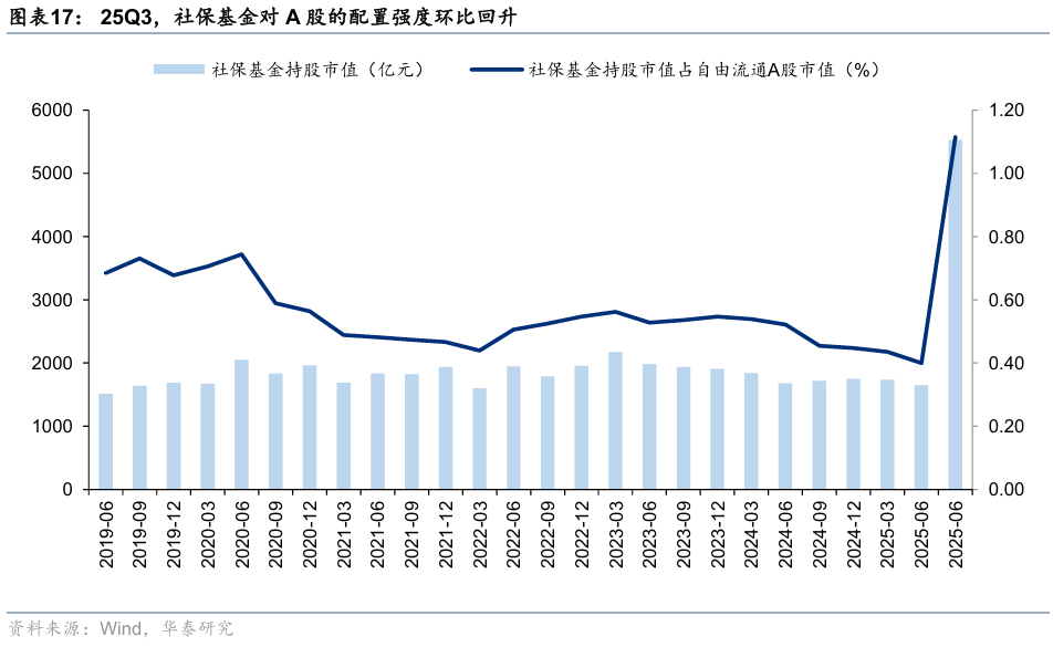 规模:25Q3社保基金持股占比回升至1.12%,位于2019年以来历史高位;