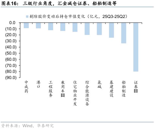 A股红利内部切换:25Q3汇金主要在红利内部切换,主要增仓航空,减仓船舶制造,此外对证券的关注度也有所回落。