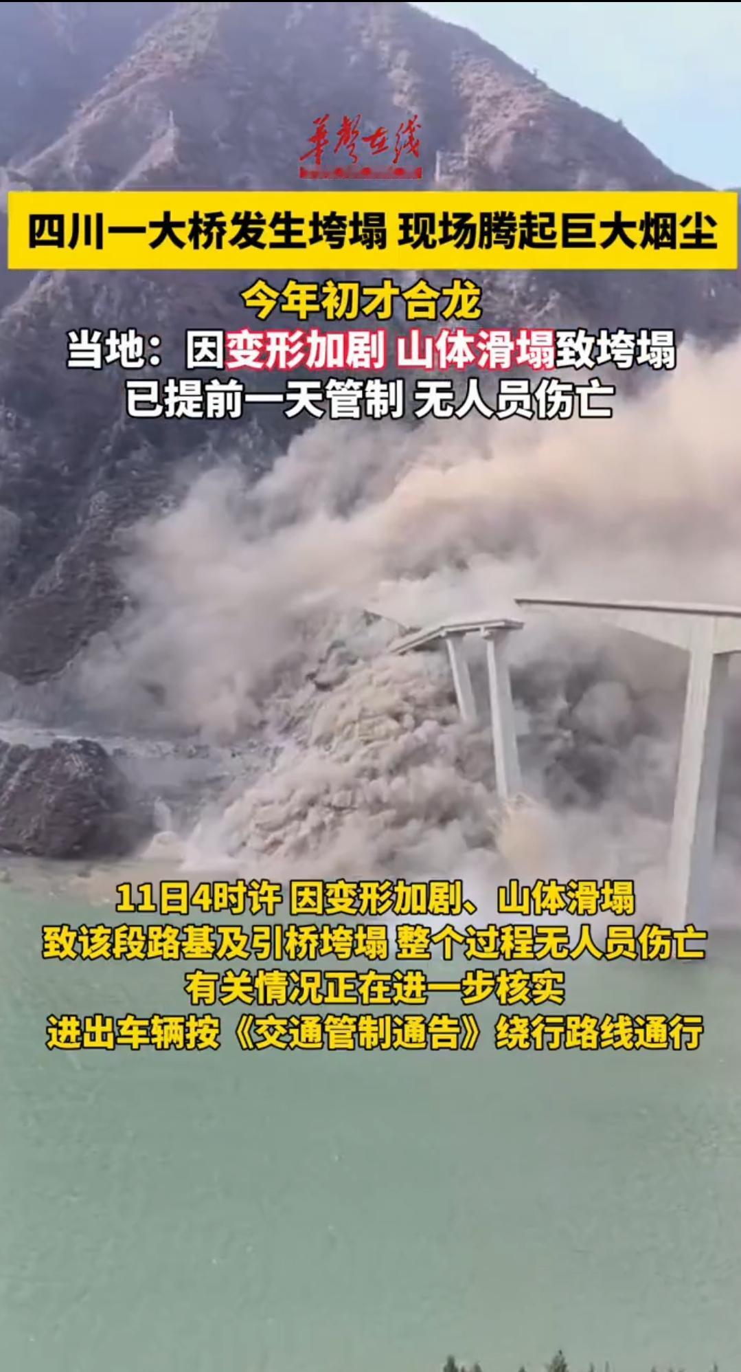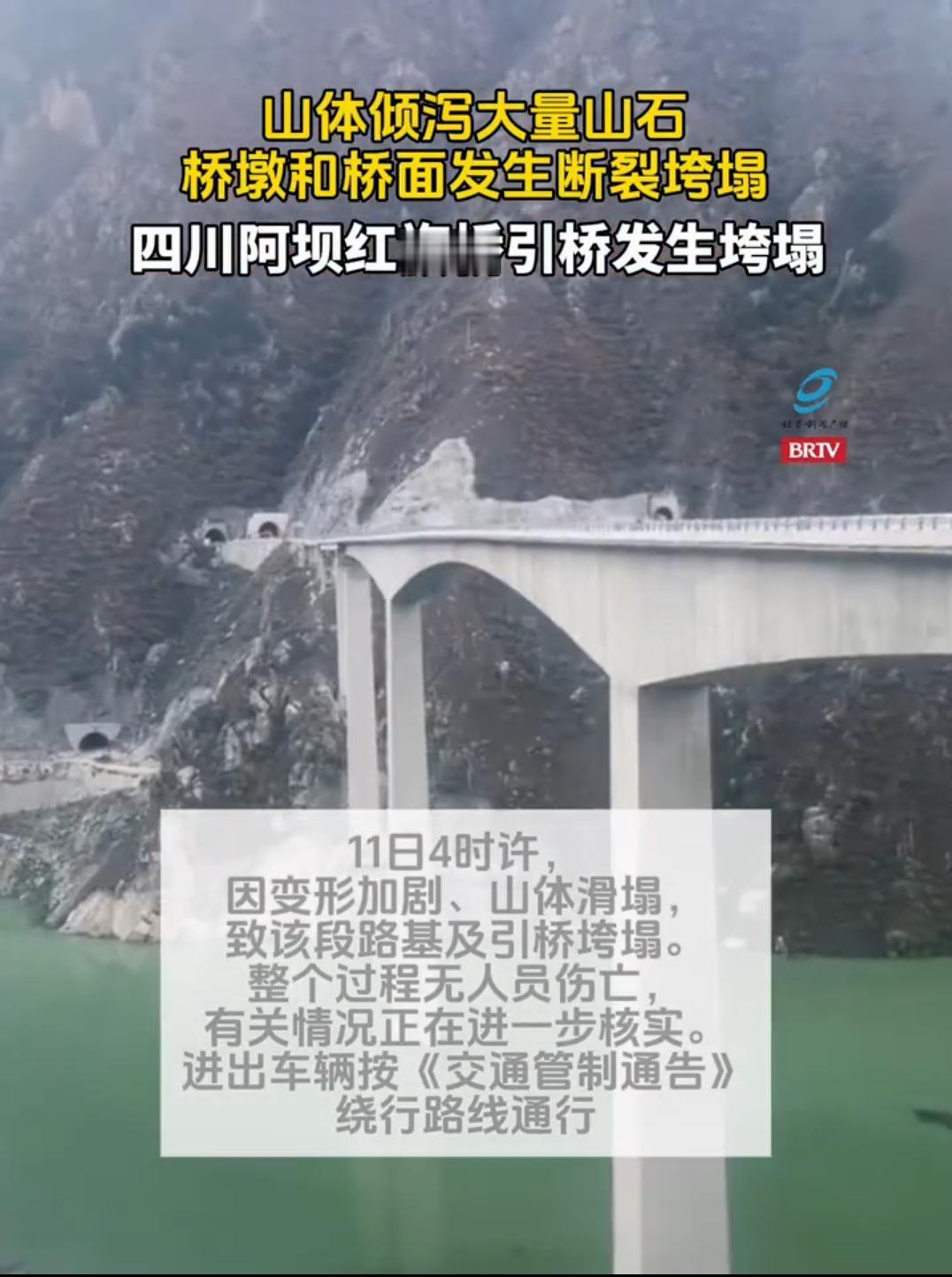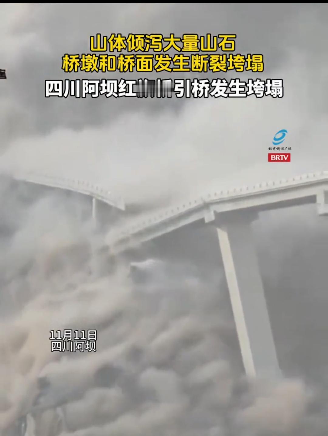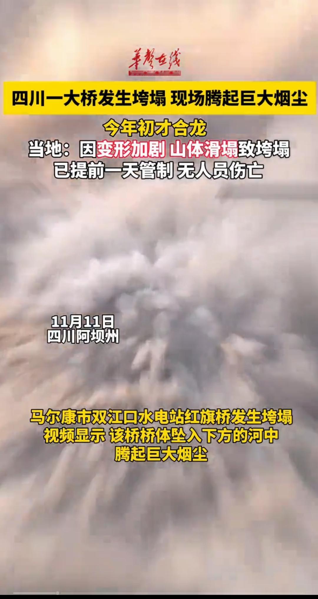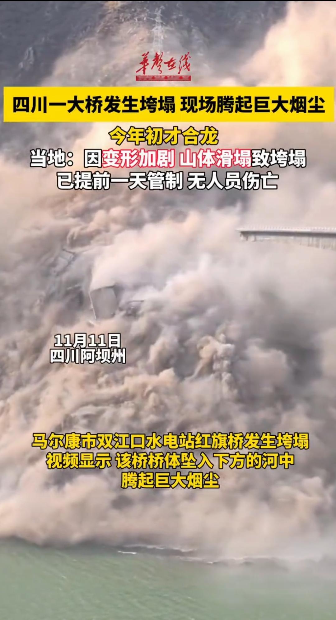 四川阿坝红旗特大桥发生垮塌,今年1月主跨刚合龙,官方:山体滑坡致边坡裂缝,已提前