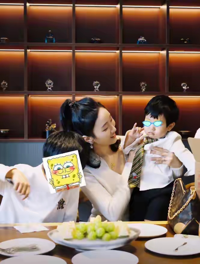 黄晓明一家4口参加生日宴,小海绵被奶奶搂在怀中,长腿溢出屏幕
