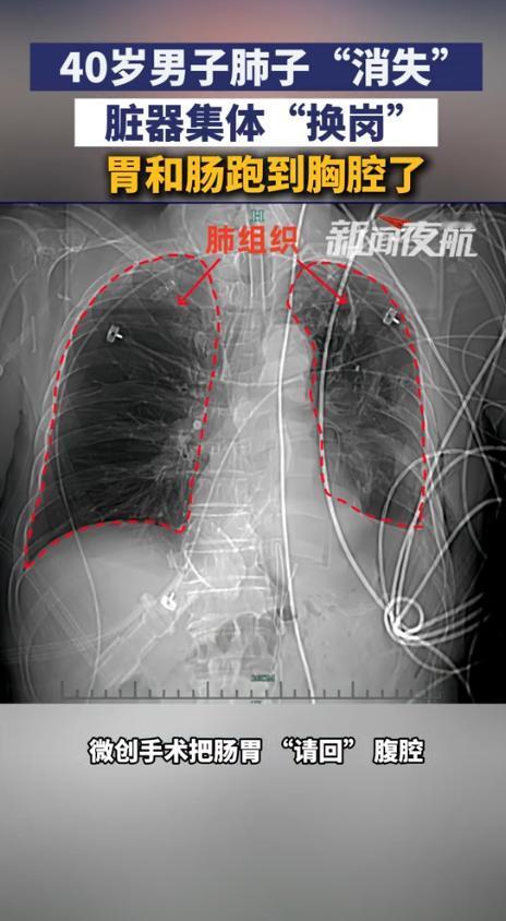 “这就是命!”浙江,一男子参加活动抽奖,意外中奖获得了一次免费体检的资格,可体检过后却发现左肺消失了,去医院检查后确诊左肺是胃和肠管移位压缩了左肺,幸运的是,这次体检提前帮他找到了问题。网友:这比中五百万还有用!   浙江一位40岁的壮年男子季哥,怎么也想不到一场随手参与的抽奖,会变成改变人生的“生死考验”。   他凭借运气抽中社区公益活动的免费体检名额,本是抱着“反正不花钱,查完图个安心”的心态前往,却在胸部CT检查后收到了让医生都神色凝重的结果。   他的左肺,在影像上几乎“消失”了。   季哥平时身体硬朗,爬五六层楼梯不喘大气,连感冒都很少找上门,更是没进过医院的大门。   拿到体检报告时,他反复揉着眼睛确认,屏幕上右侧肺部的红色影像清晰完整。   而左侧本该是肺叶的区域,却被一团不规则的阴影填满,完全看不到正常肺组织的形态。   是不是机器出问题了?我好好的怎么会少个肺?带着满肚子的疑惑和慌乱,他当天就带着报告赶往浙江大学医学院附属第一医院,直奔胃肠外科寻求答案。   接诊的副主任医师钱家杰仔细查看了CT影像后,用一个直白又形象的解释解开了季哥的困惑。   你的胸腔和腹腔之间,隔了一层叫膈肌的肌肉,就像家里复式房的‘楼板’,而你这层‘楼板’刚好破了个洞。   钱家杰进一步说明,腹腔内的压力天生比胸腔高,一旦膈肌出现破损,原本该待在腹腔里的胃和肠管,就会被压力推着向上“跑”,硬生生挤入了胸腔。   这些脏器在胸腔里不断扩张,慢慢抢占了左肺的生存空间,把脆弱的肺叶越压越小,最终在CT影像上呈现出“消失”的假象。   让季哥费解的是,这么严重的问题,自己怎么一点感觉都没有?   钱家杰解释,这和他的年龄、病情发展速度密切相关。   季哥的膈疝形成时间不算太久,加上他正值壮年,脏器功能代偿能力强,身体暂时适应了这种异常状态,才没有出现明显的不适。   但这并不意味着风险不存在,反而像一颗隐藏的“定时炸弹”:随着时间推移,左肺会持续被压迫,逐渐丧失呼吸功能,严重时可能引发肺实变、纤维化。   移位的胃肠会出现蠕动变慢、贲门松弛的问题,导致反复反酸烧心,极端情况下还可能发生肠扭转、坏死,甚至会挤压心脏,影响血液循环,危及生命。   了解到病情的严重性后,季哥当即决定接受手术治疗。   钱家杰团队迅速为他制定了腹腔镜下膈肌修补术的方案,这种微创手术创伤小、恢复快,能最大程度减少对身体的影响。   手术中,医生通过几个微小的切口伸入器械,先小心翼翼地将“跑错地方”的胃和肠管轻柔复位,送回腹腔原本的位置。   再用高强度的医用缝线将膈肌的破洞逐层严密缝合,最后铺上一张专用补片进行加固,从根源上防止破损再次发生。   整个手术过程十分顺利,术后第三天,季哥复查胸部CT时,终于看到了让他安心的画面。   被压迫已久的左肺重新舒展开来,体积恢复到正常大小,右肺也摆脱了之前的挤压,回归了原本的位置。   季哥感慨,感觉胸口一下子敞亮了,呼吸都比以前顺畅太多,就像卸下了一个看不见的包袱。   若不是这次意外的体检,他根本不知道身体里藏着这么大的隐患,这次抽奖抽来的不是体检,而是“第二次生命”。   季哥的经历被分享到网络后,迅速引发了网友的热烈讨论。   有网友留言,这哪是中了体检,分明是中了‘救命符’,比中五百万还珍贵。   这场意外的“幸运”,也让很多人重新审视“幸运”的真正含义。   生活中没有那么多“刚好中奖”的巧合,却有无数“主动关注健康”的机会。   我们总以为疾病离自己很远,却忘了它可能正潜伏在身体的某个角落,等待着被忽视的机会。   健康从不是理所当然的馈赠,而是需要一生用心呵护的宝贵财富。   一次常规体检、一个良好的生活习惯、一份对身体信号的敏感,都是守护健康的坚固屏障。