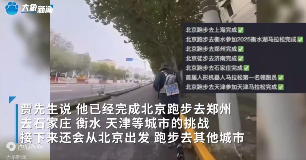 这个男子火了!北京,一男子为了挑战自己,用时34天从北京一路跑到了上海。1300