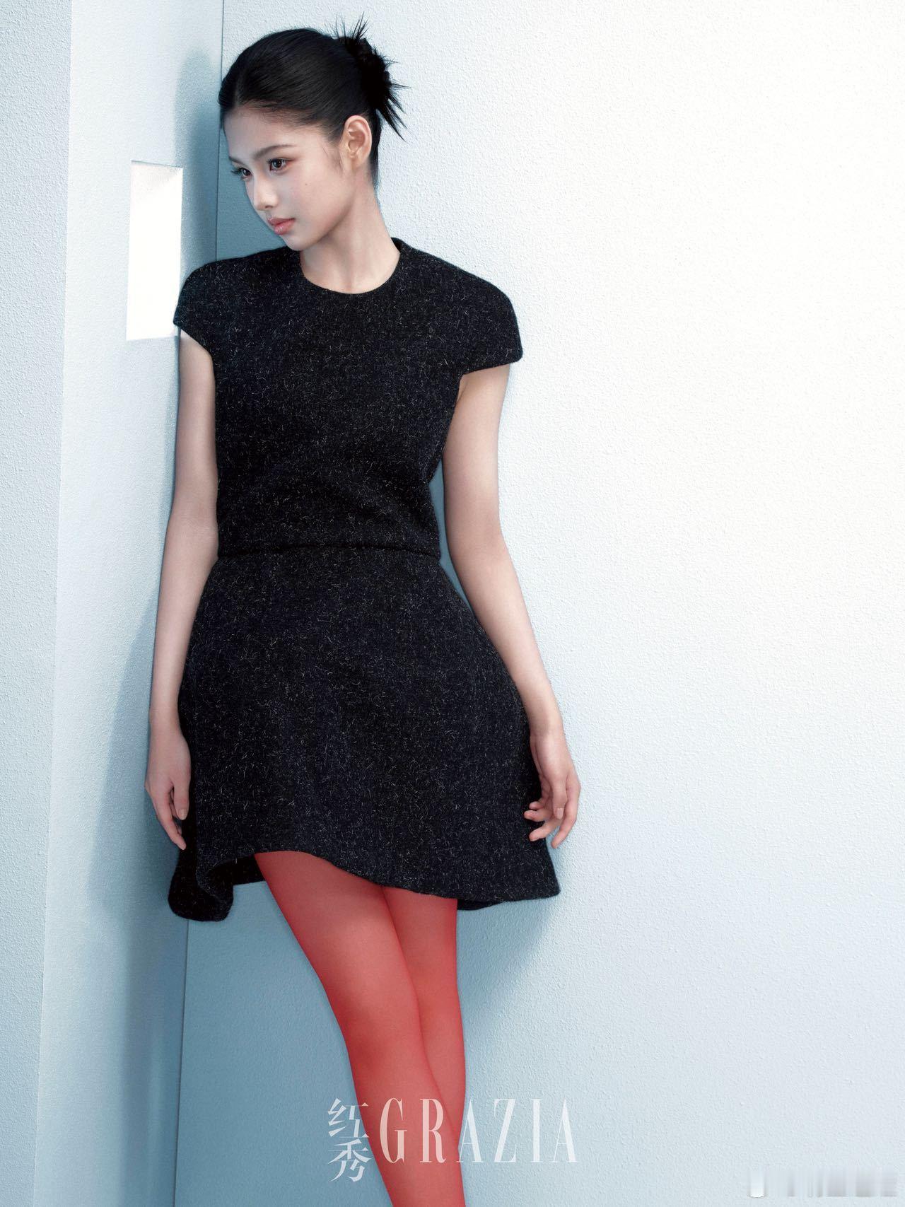 高颅顶丸子头利落率性,裸肩线条与锁骨链光影缠绵,蹙眉抬眼间少女心事藏于指缝,极简背景更显肌肤通透如玉。