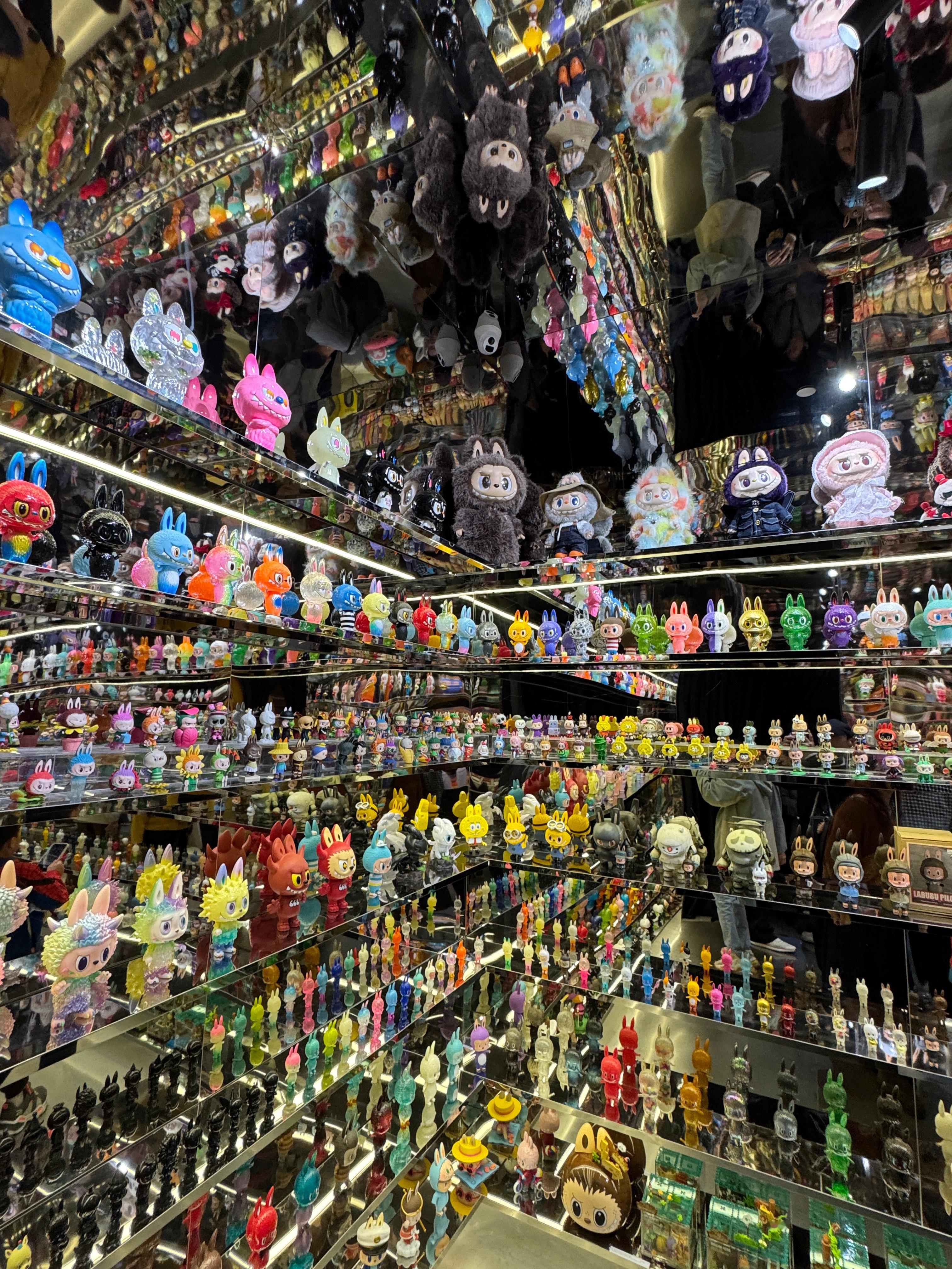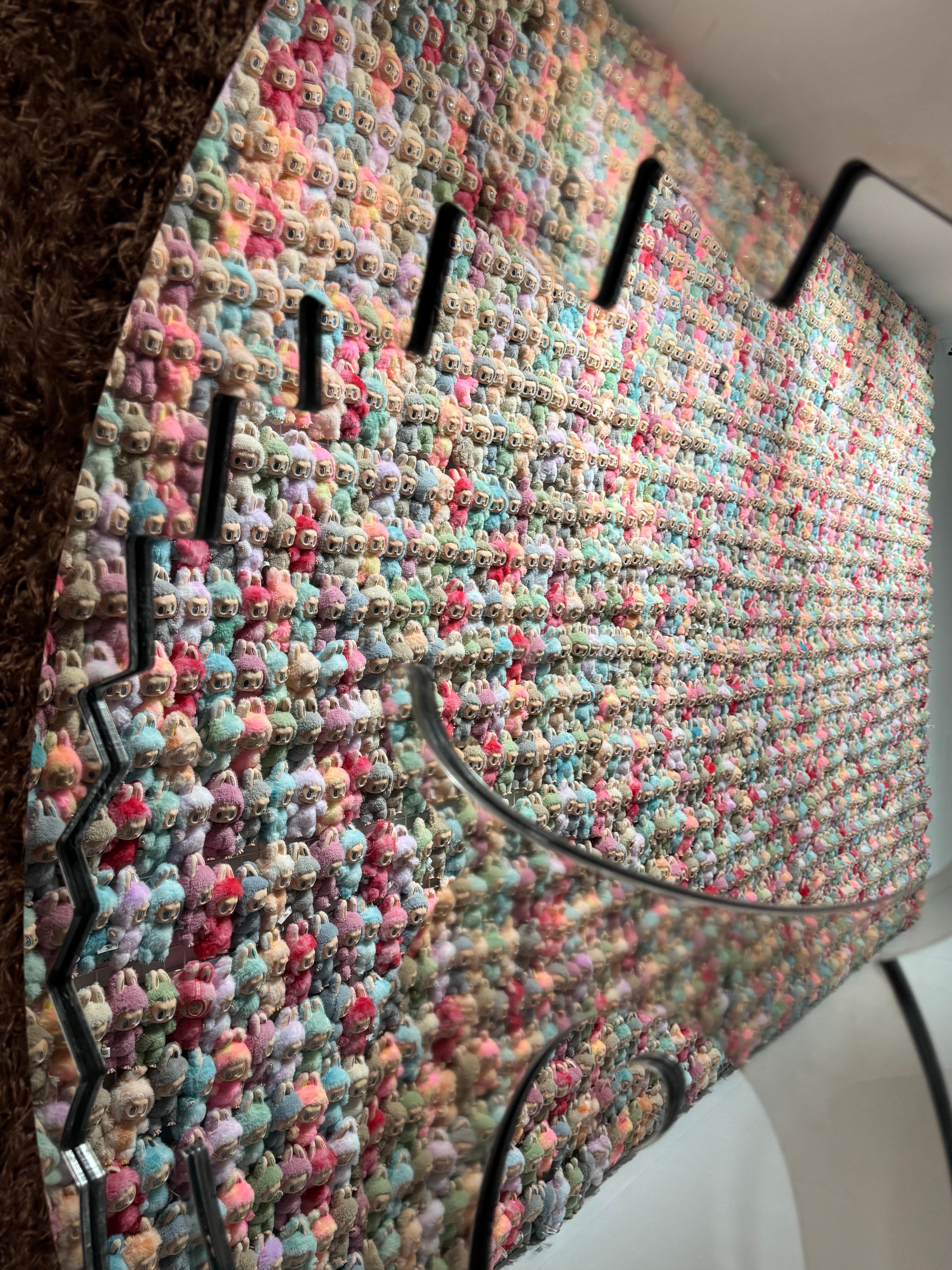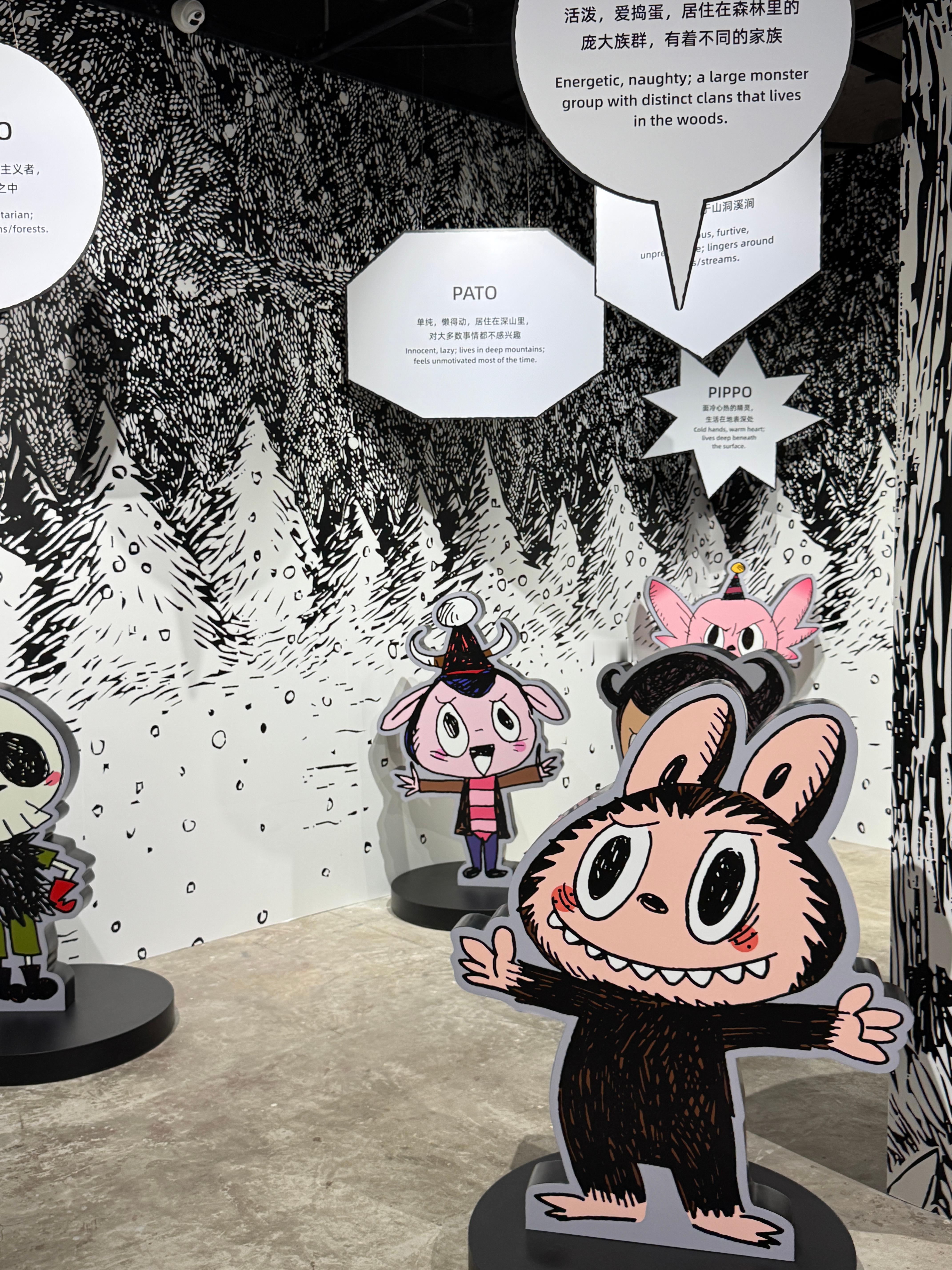 Labubu十周年上海快闪封神!我来了两次!刚到广场上6米高的巨型KINGMON震撼到失语,下午2-4点的柔光下拍照,不用滤镜都能刷爆朋友圈。走进展区瞬间闯进奇幻森林,精灵天团大地图清晰标注着每个成员的故事,倒挂的黑色植绒KINGMON大头超萌,工作人员还会主动帮忙找角度拍合影,社恐也能放心冲。最戳老粉的是近300张龙家升亲笔画手稿,从早期草图到角色定稿,每一笔都藏着Labubu的成长轨迹,门上的涂鸦更是亲笔原作,听着工作人员讲解创作故事,瞬间沉浸式共情。两千只Labubu组成的毛绒墙视觉冲击感爆棚,连连看玩家狂喜,镜面展区里历代公仔集结,从初代经典到联名款全收录,连库克同款定制Labubu都能近距离打卡,细节控狠狠满足。互动区更是惊喜不断!脚踏光影就能和精灵们“捉迷藏”,触感细腻的搪胶模型可以近距离接触,逛到最后还能给十周年明信片盖章,门票里藏着的迷你小周边超治愈。限定区的毛绒吊卡、钥匙圈盲盒和草图集套装质感绝了,Spooky幽灵、戴礼帽的Tycoco每款都想抱回家,妥妥的收藏级宝藏。十年光阴,从一只小精灵长成世界级IP,这场展览不仅是藏品盛宴