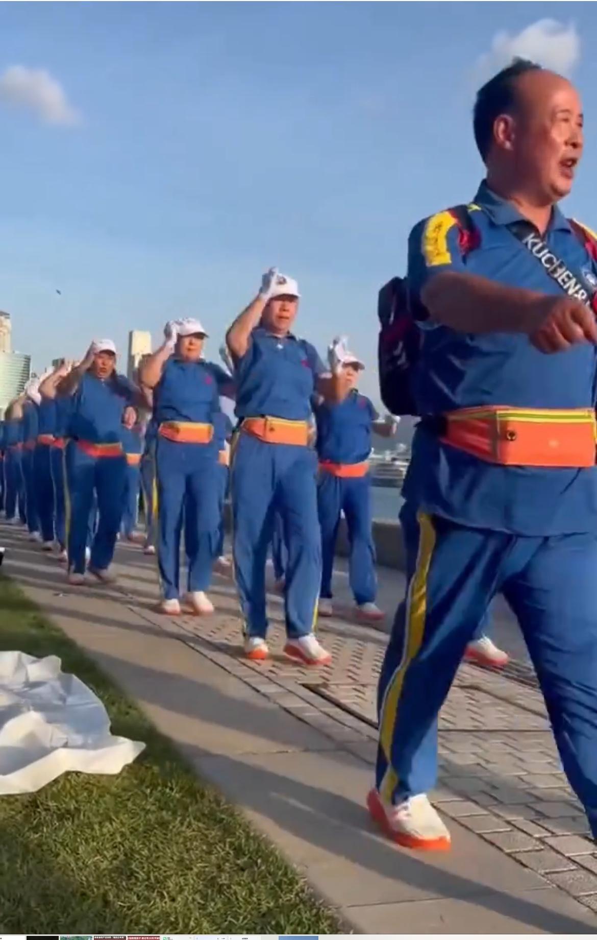 退休大爷大妈的暴走团惊现香港,放着巨响的音乐摇摇摆摆的走过维港,外国女孩好奇跟随