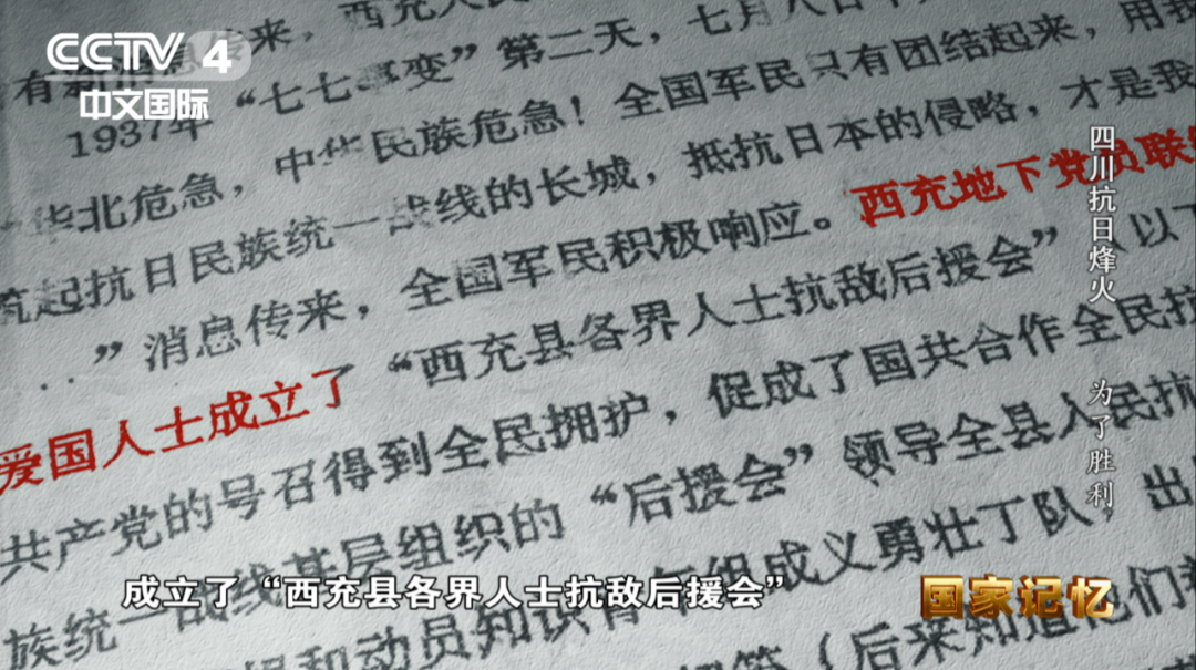 1937年卢沟桥事变爆发后不久,西充地下党员联络进步教师和爱国人士成立了“西充县各界人士抗敌后援会”,在当地开展宣传、募捐活动,动员广大青年参军参战,杀敌报国。