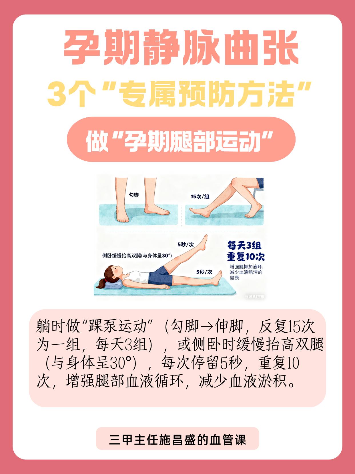 孕期静脉曲张:3个“专属预防方法”。孕期因激素变化、子宫压迫,易出现静...