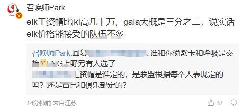 直播吧11月12日讯LPL爆料人更博爆料:elk工资帽比jkl高几十万,gala大概是三分之二,说实话elk价格能接受的队伍不多。
