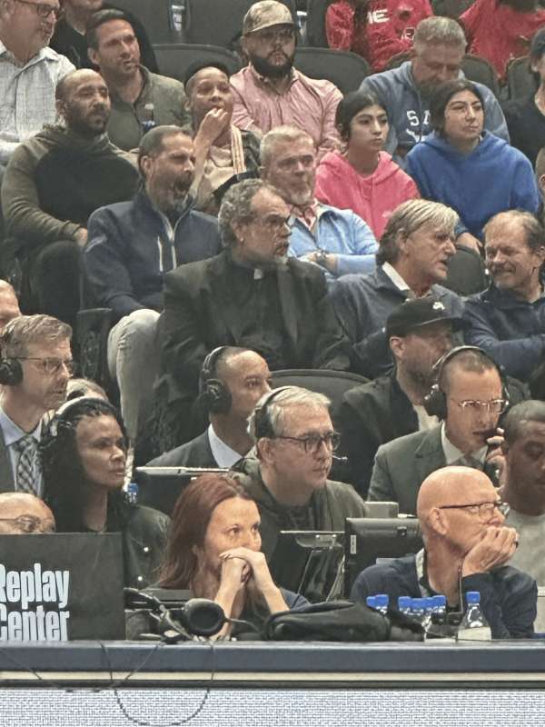 这是什么阴间新闻…………独行侠主场,原来Nico的位置,今天坐了一位,emm……牧师……咋的,撒点儿圣水整个净化仪式???不行再来点儿黑狗血或者整一只大公鸡放个血,让它在场里飞一圈吧朋友