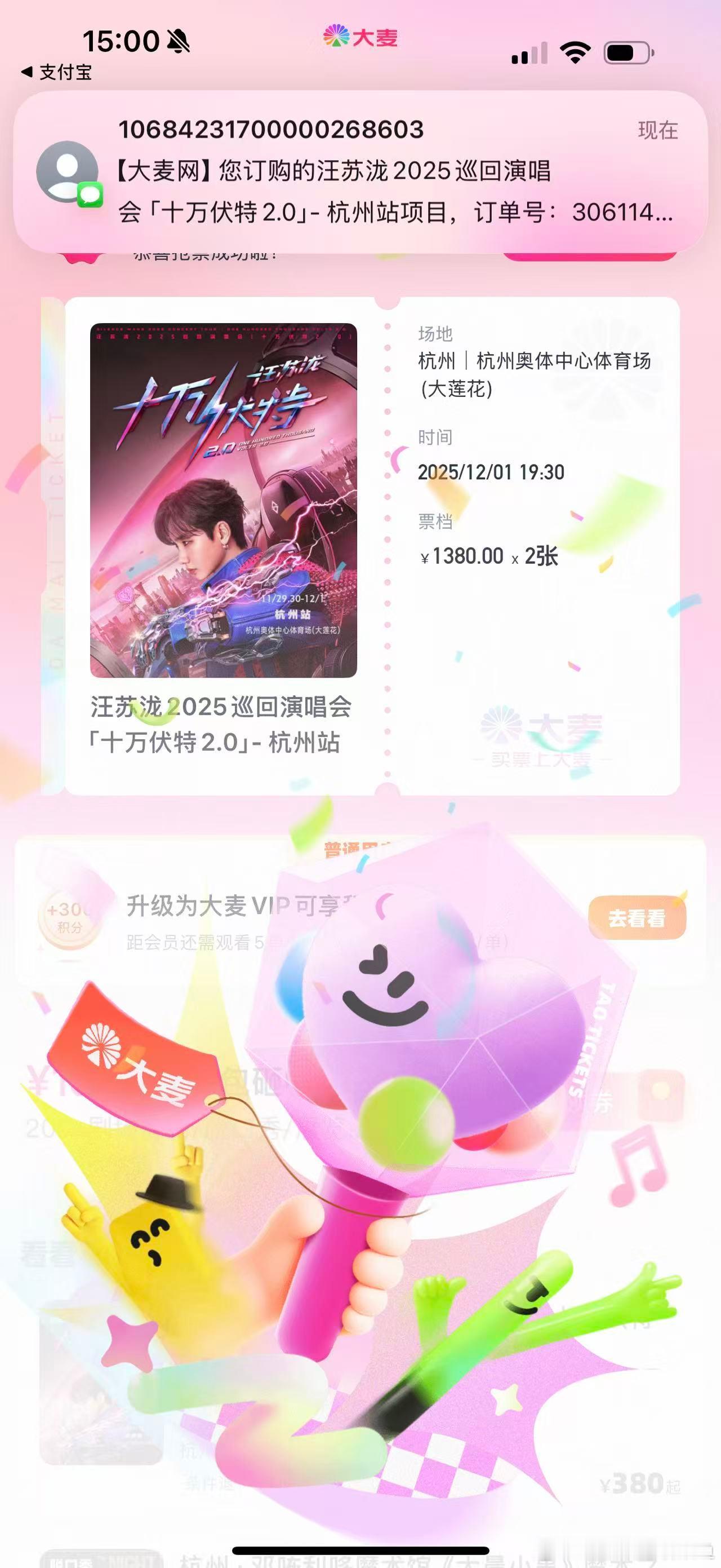 自己抢到580然后我同学帮我抢到1380果断选内场