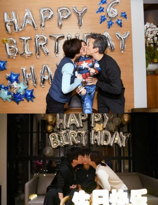 孙俪和邓超又亲上去了。 儿子12岁,脸都快被亲扁了,没躲。 十几年,年年这样,亲