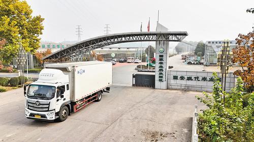 10月28日,一辆满载净菜的货车驶出固安县顺斋瓜菜种植专业合作社。本报记者王伟摄