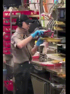 美国,一位顾客在一家汉堡店无意间拍下这一幕。 “加料不加价”.…… 汉堡伙计在把