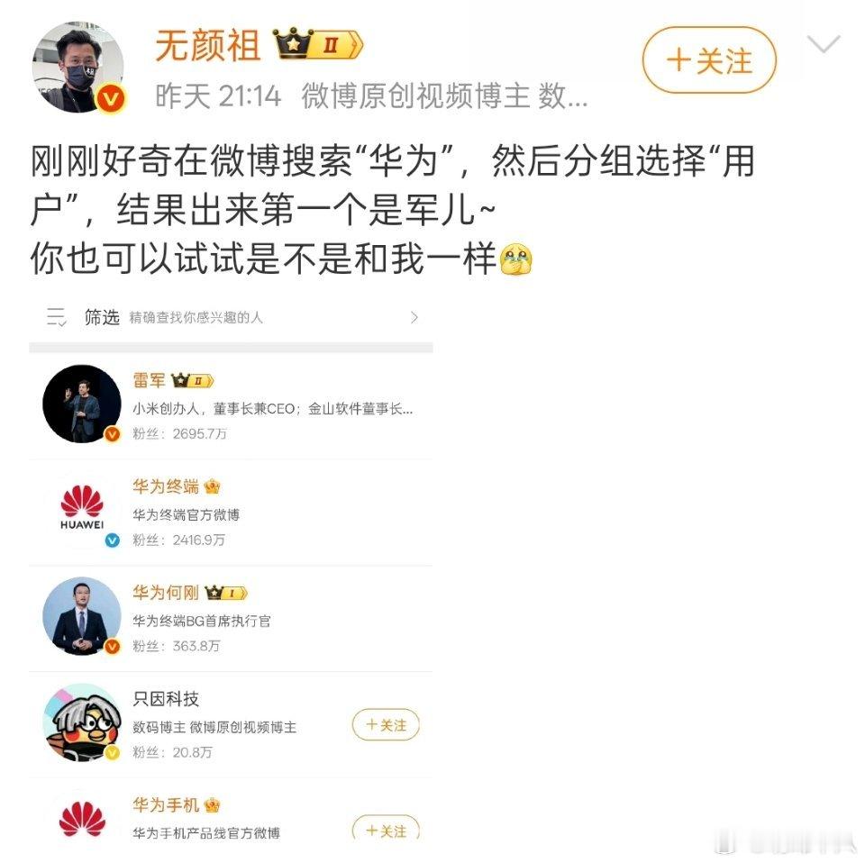 为啥我搜出来的都是华为?