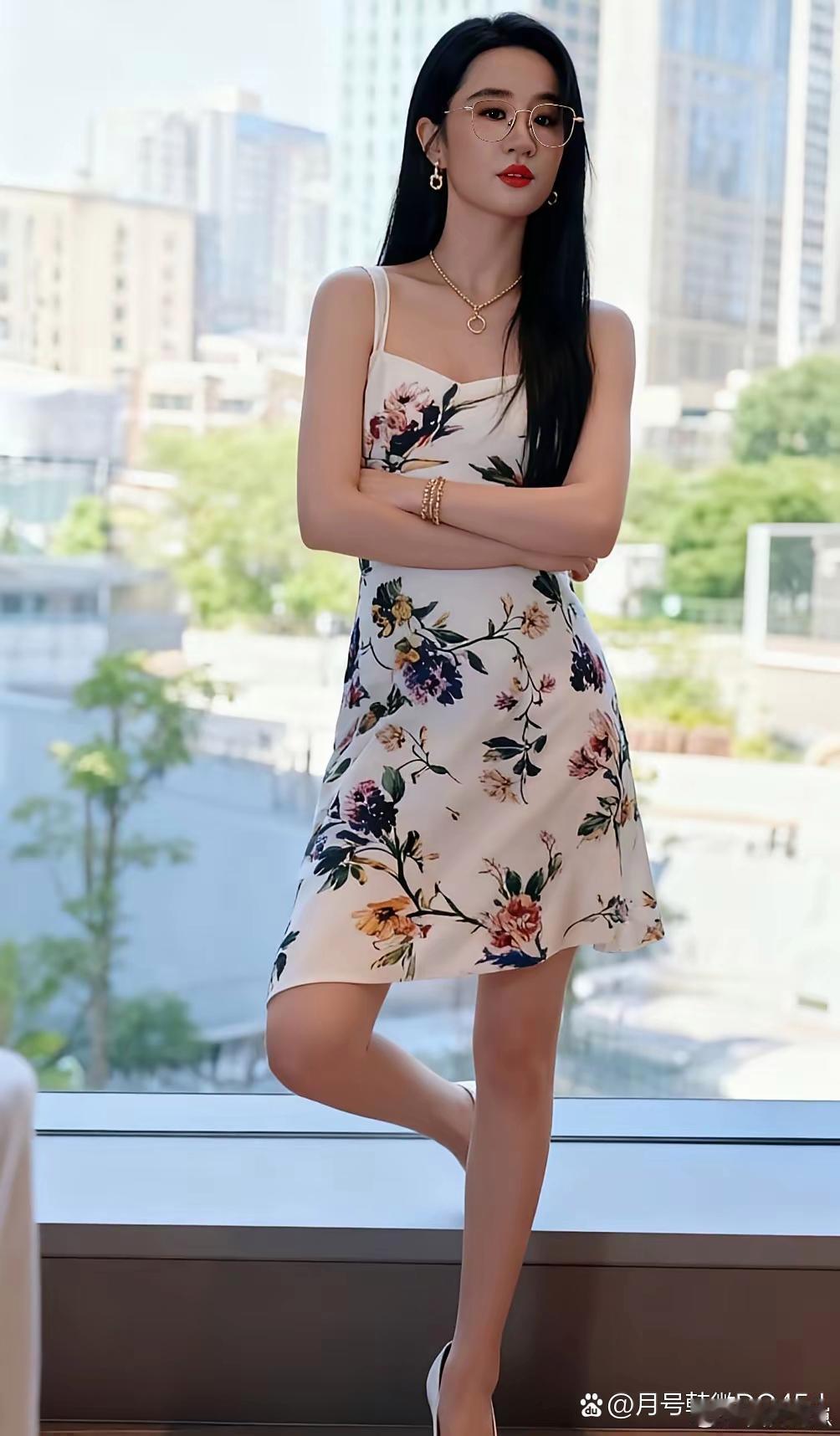刘亦菲身着碎花连衣裙,脚踩白色高跟鞋,温婉端庄间满是知性韵味,美得让人挪不开眼~