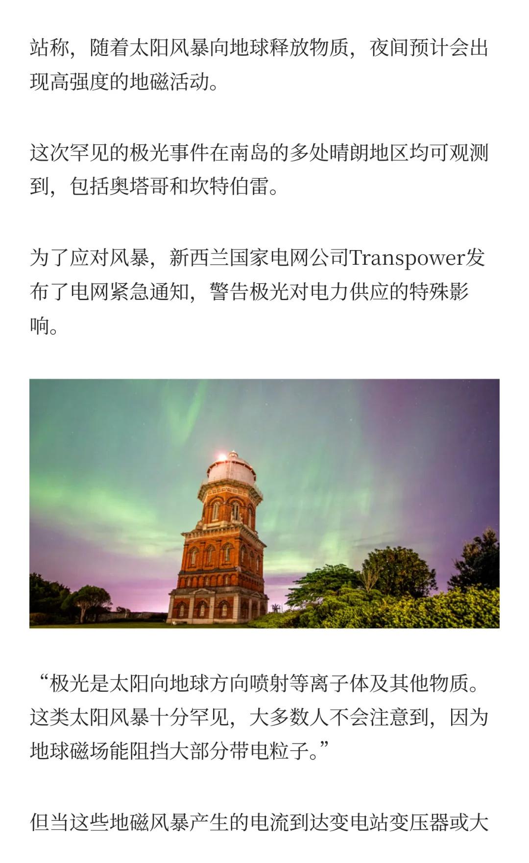 新西兰又现极光奇观,地磁风暴触发电网预警 新西兰 奥克兰 极光 宇宙探索日记 非自然现象 探索宇宙