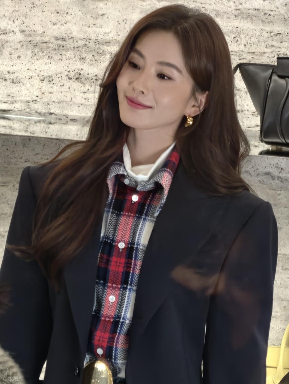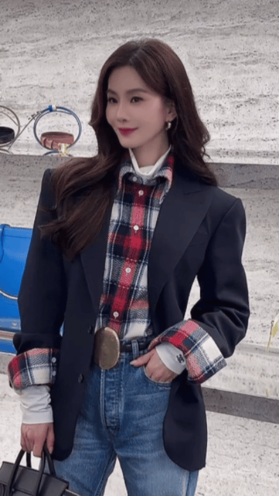 今天刘诗诗在出席时尚活动的时候搭配的好显年轻,看上去也极为靓丽,真的是太美了。 她里面穿漂亮的格纹衬衣,外面套着黑色的西装,两件衣服叠穿起来效果很出众。 刘诗诗下身穿做旧风格的牛仔裤,脚踩黑色的尖头高跟鞋,彰显出了满满的犀利感。 她的身段是特别苗条的,这次穿的很宽松,不过显得洒脱又随性。 刘诗诗留着超美的大波浪卷长发,还戴着金色的耳坠,增添了浪漫风情,真的是很有吸引力。 她的皮肤白到发光,展现出了青春活力气息,越变越时尚了。