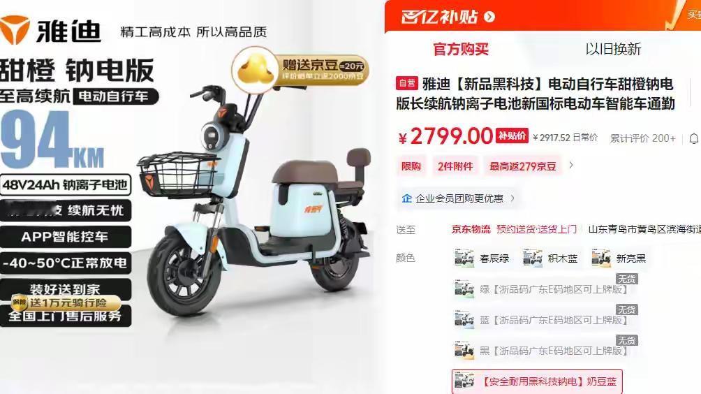 2799元起,雅迪钠电池电动车上市,为什么销量惨淡?主要3大原因 2799元起却