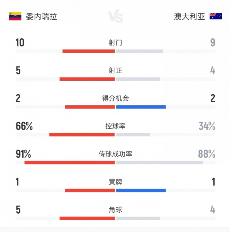 此役上半场热苏斯·拉米雷斯为委内瑞拉破门,下半场两队均无建树,最终委内瑞拉1-0澳大利亚。