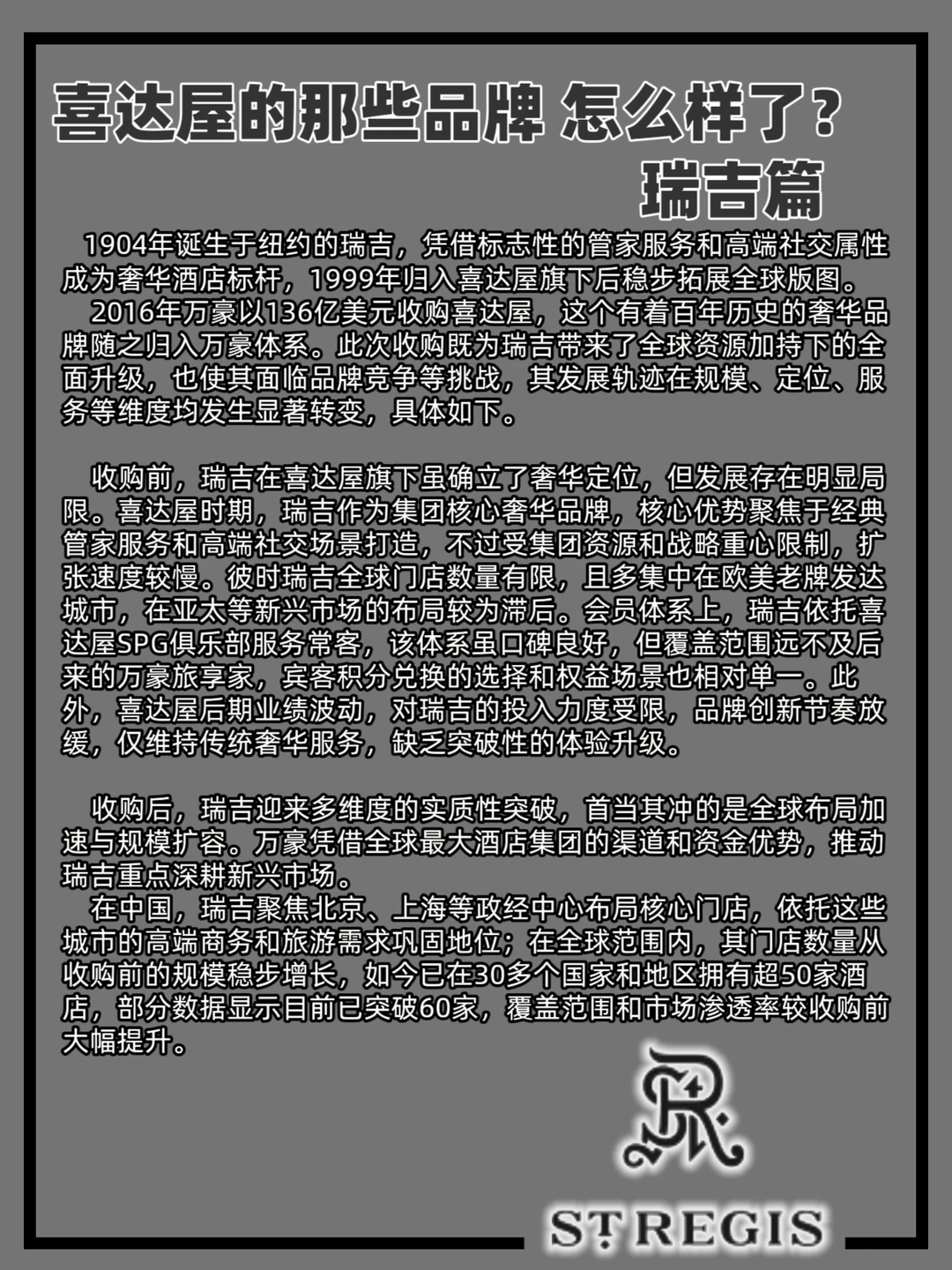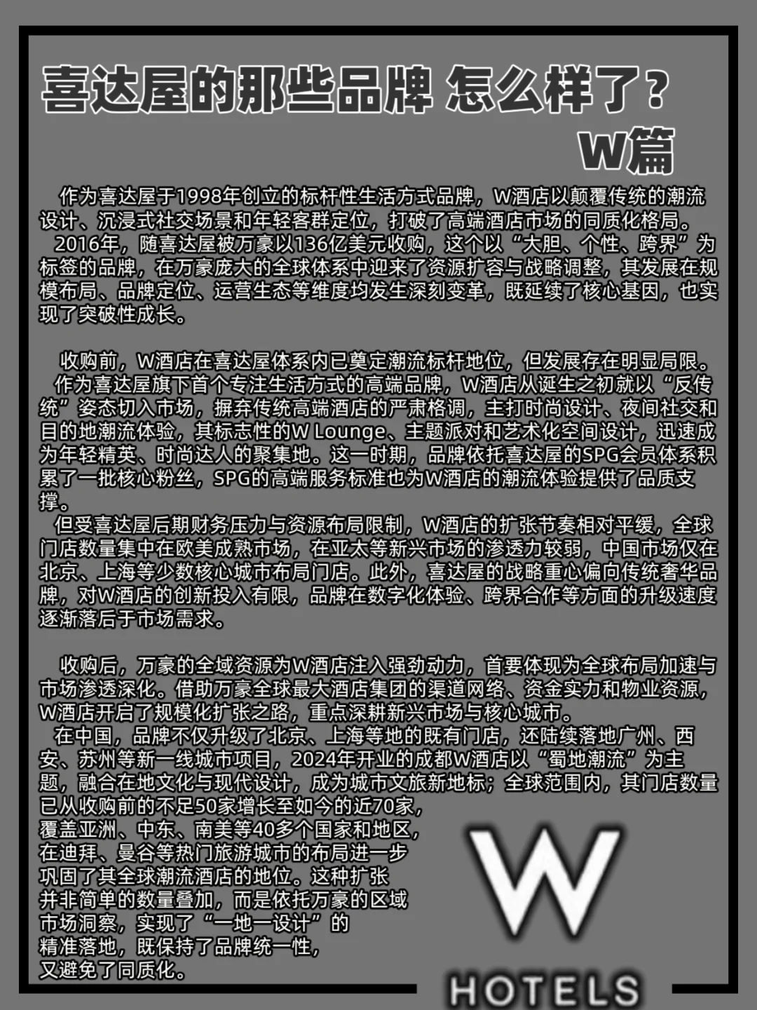 那么喜达屋旗下的11个品牌(瑞吉,W,豪华精选,臻品之选,威斯汀,艾美,喜来登,Design,福朋喜来登,雅乐轩,源宿)怎么样了呢?
