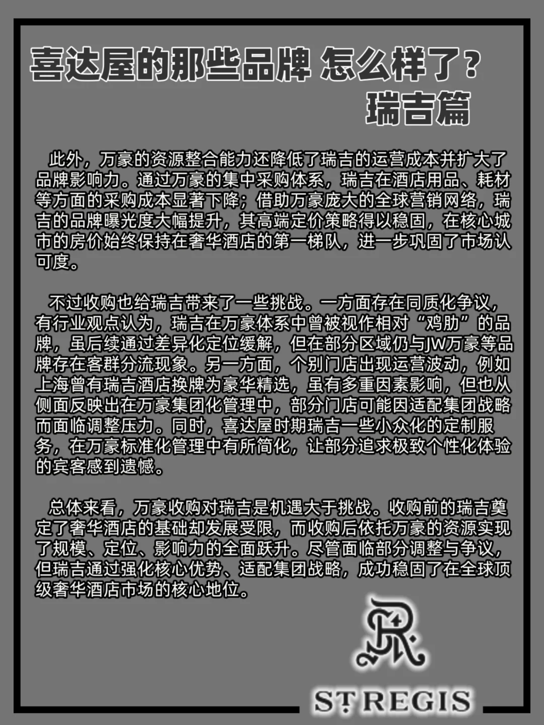 一方面权益通用性增强,会员能在原两家集团旗下所有品牌酒店享受免费WiFi、延迟退房等基础福利,高端会员还能享受套房升级保障,积分兑换的酒店目的地选择也大幅增多;同时积分还可与美联航等航空公司里程互通,拓展了使用场景。但另一方面,SPG曾有的“有空套房必升级”这类厚道权益被削弱,部分高端会员觉得礼遇不如从前,权益出现明显缩水!