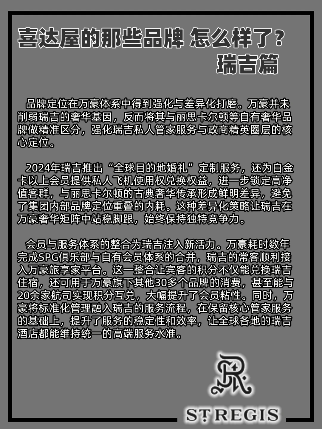 其实在喜达屋时代,瑞吉定位高于W和豪华精选。