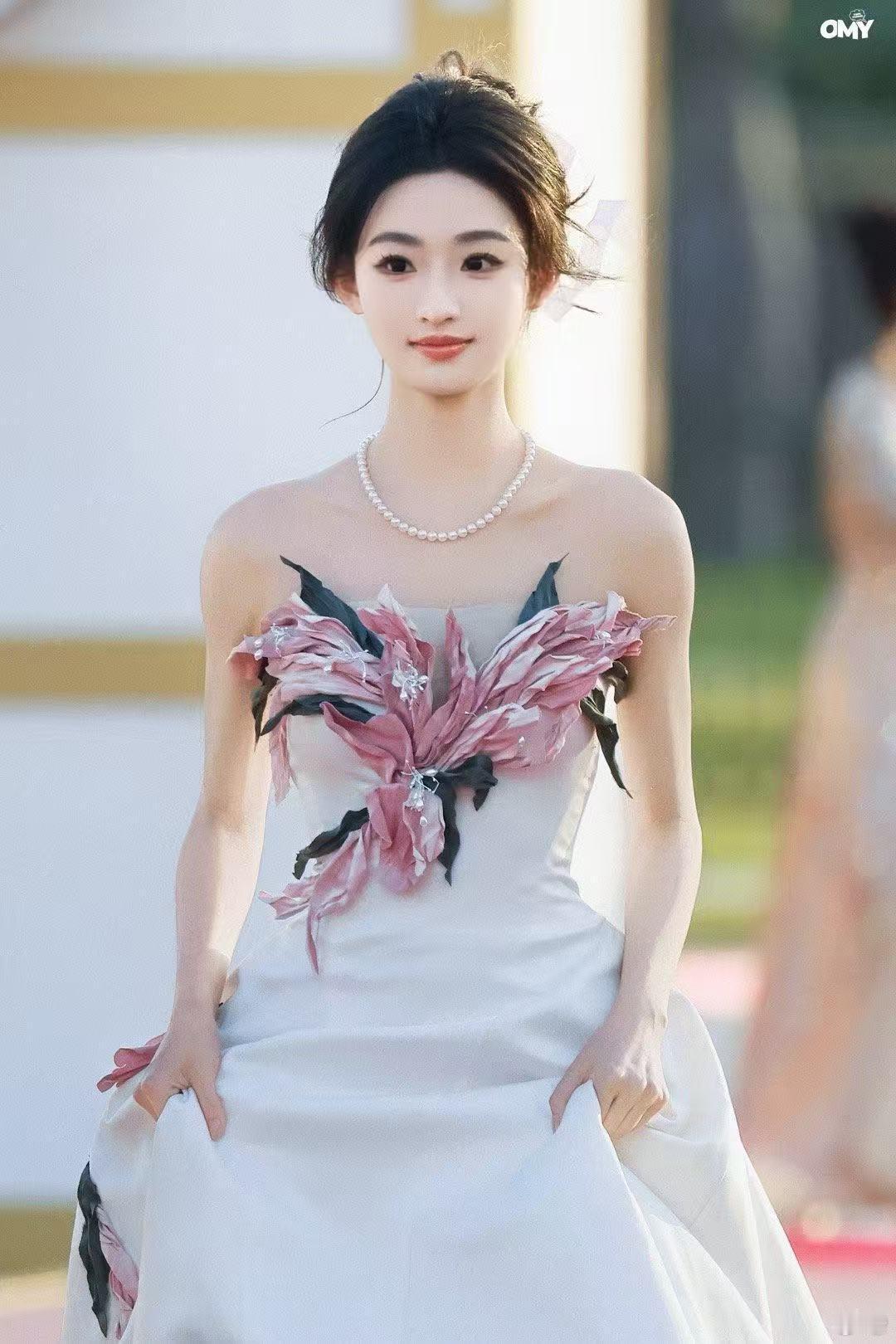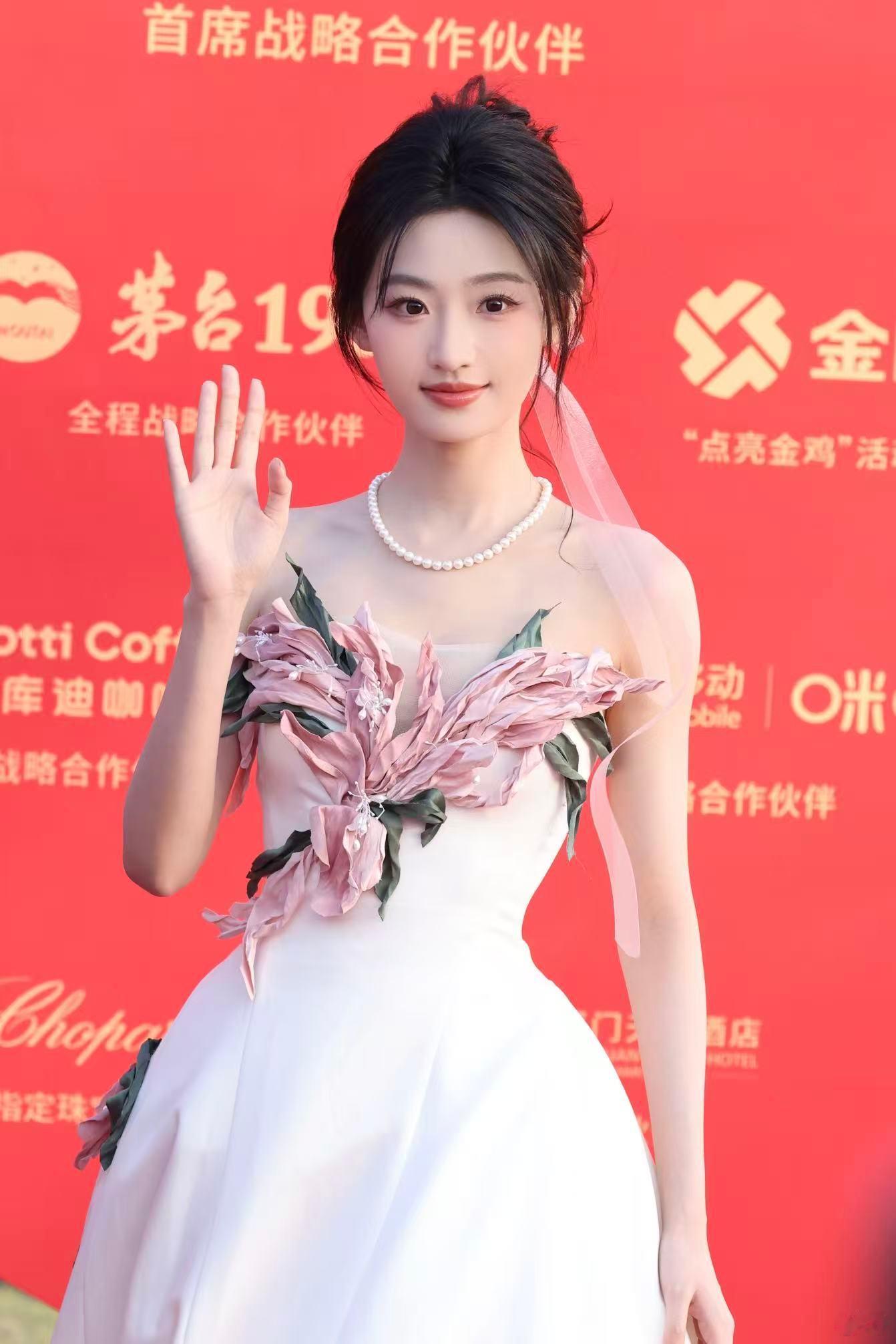 家人们!金鸡红毯又有新面孔了! 首次亮相便是金鸡洪涛,星辰大海表现亮眼,今晚一袭温婉长裙,落落大方。这波95花潜力股,我先入股了!