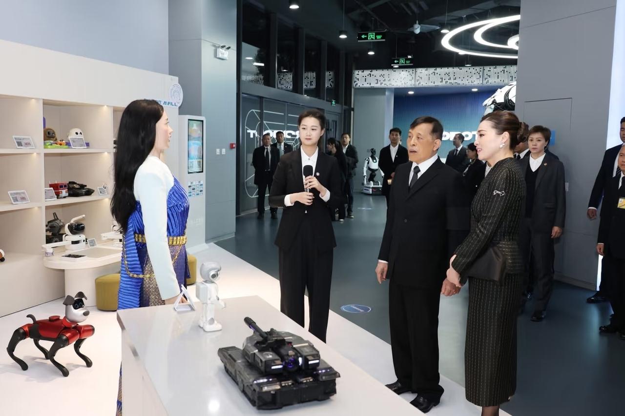 给玛哈国王和苏提达王后讲解的小姐姐太美了! 11月15日下午,玛哈国王和苏提达王后以及泰国总理去北京人形机器人中心了,令人惊喜的是给玛哈国王和苏提达王后讲解的小姐姐太漂亮了,画面中,这位小姐姐不仅身材比玛哈国王和苏提达王后高,皮肤也是白皙透亮,另外她还扎着马尾,身穿黑色西装搭配白色衬衫,真的是比娱乐圈的明星还要好看。当然了还有其他讲解小姐姐也都是非常有气质。可是和苏提达王后比起来还是没有她端庄大气。毕竟苏提达王后也是万里挑一的才女,各方面都很优秀。她不仅颜值高,体育项目也很精通,还会开车和辅助驾驶飞机。