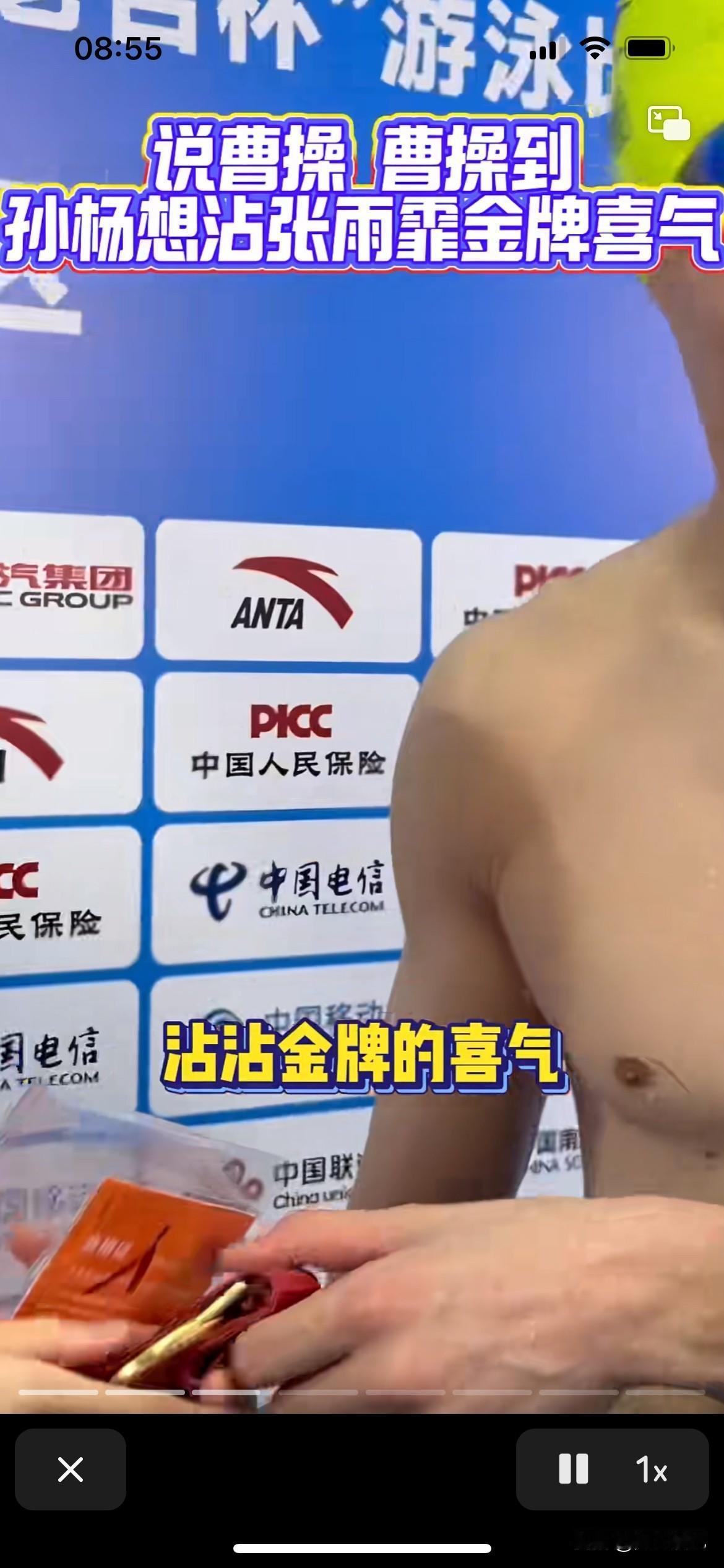 孙杨也太尴尬了,这次全运会自己没有拿到金牌,而是跟张雨霏要金牌看看,顺便摸摸。 当年你叱咤泳坛的时候,自己拿金牌拿到手软,是别人想过来摸你的金牌,你也是最棒的,多少人想沾你的喜气啊。 你早就证明了自己,能有勇气跟这些小将一起冲刺,对自己对对手都是有一种超越。