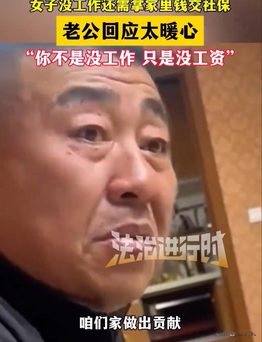 这是明白人!吉林,女子在家中休息,突然发现有人给自己交了17000多元的社保,得知是老公给交的,晚饭后就问老公,自己连工作都没有,为什么还要用家里钱给她交社保,老公回应相当暖心:你不是没工作,只是没工资! 晚饭后,妻子在聊天时突然想起这件事,就询问老公:你今天是不是把我社保给交了?17000多啊 老公没有一丝犹豫,回答道:交啊,17000也得交,这到老了是一种保障啊 妻子心里有些过意不去:我连工作都没有啊,还从家里拿钱去交这个社保 老公认真回应:咱们家做出贡献,牺牲最大的就是你,擦地,擦玻璃,洗衣服,家里的费用都是你去交,我们从来都没操过心,虽然说我跟儿子忙碌一天,工作也很辛苦,但下了班就想第一时间回家,享受家的温馨,你的人生价值,都体现在家里了,你可不是没工作,你只是没有工资啊,我都捡老大便宜了 这话一说,也是把妻子哄得乐呵呵的 不得不说,这段对话看似普通,其实挺有力量。它说出了一个很多人不愿承认但心里明白的事实:家庭不是靠一个人撑起来的。有人挣钱,有人撑家,两边都离不了 只是做家务这件事,默认是免费的,不写在工资条上,也不会被拍成表扬材料,久而久之就被忽略成了理所当然。一个人愿意主动替伴侣缴社保,本质上是在替她存未来的安全感,也是在承认她的付出有价值