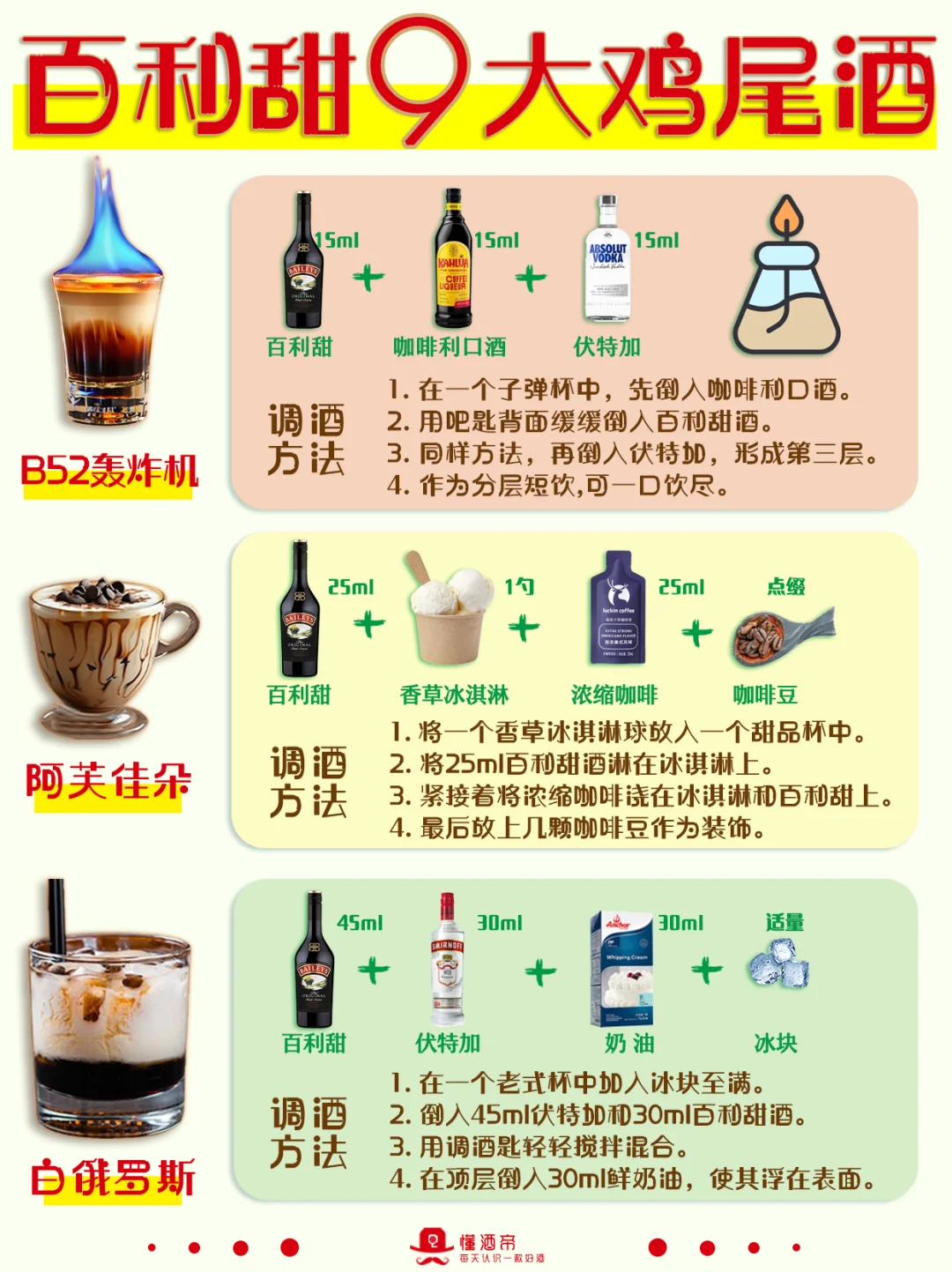 ✅️调酒原料:15ml 百利甜 + 15ml 咖啡利口酒 + 15ml 伏特加