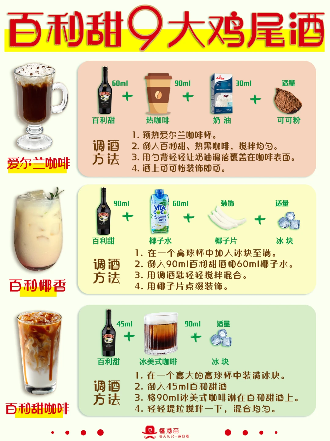 ✅️调酒原料:30ml 百利甜 + 200ml 牛奶 + 30ml 咖啡 + 冰块