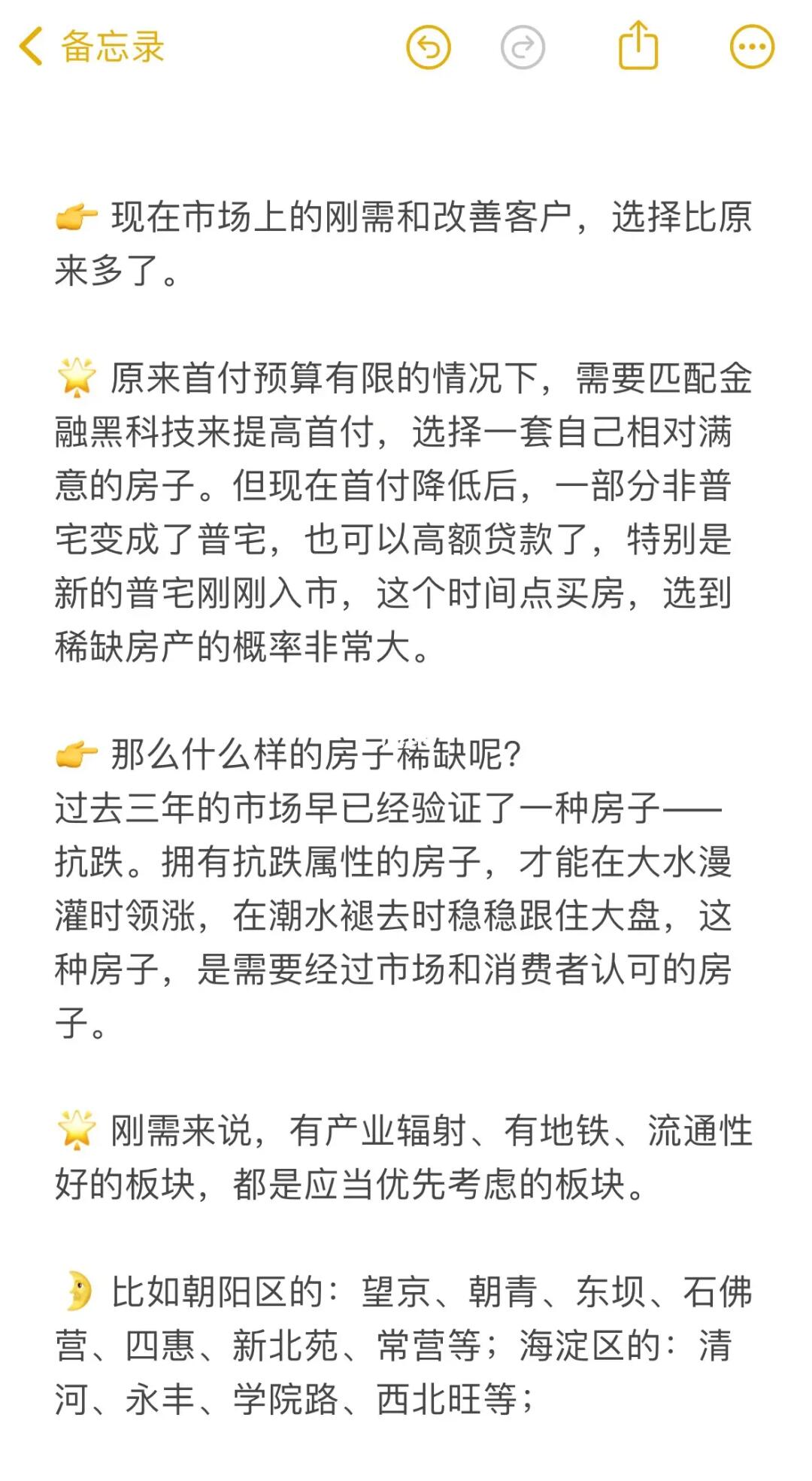 🌟 目前北京楼市挂牌量14万套左右,新政出台后,很多人被释放了购买力,稀缺房源会变得抢手。真的有购房需求的朋友,应当尽快入场。等稀有房源的价格站起来了,选择权,就又变少了。