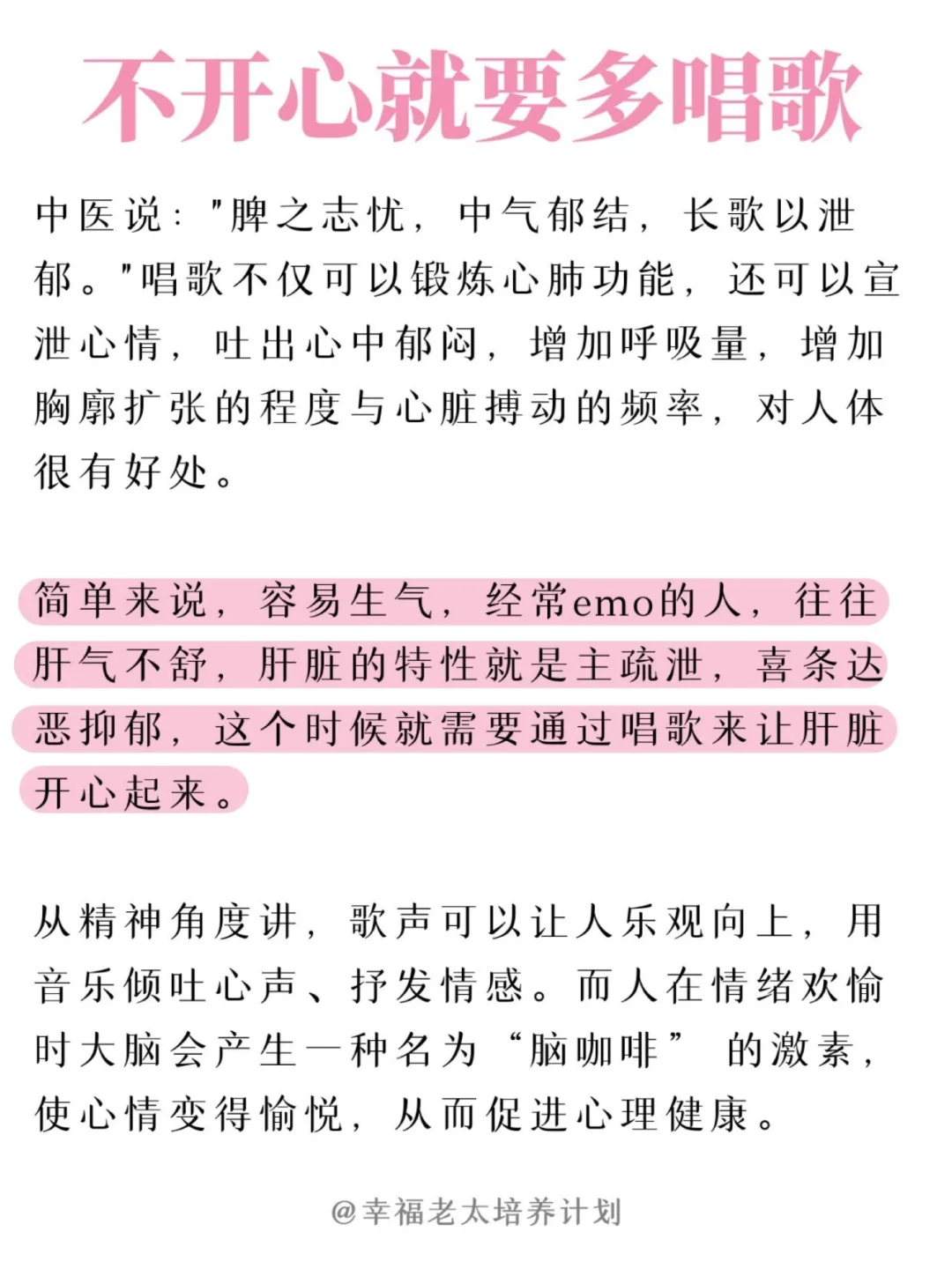 因为唱歌能让我们肝气舒畅[赞R] 平时洗澡应该没人不唱歌吧[害羞R] 洗澡唱歌会特别开心✅ 心情不好去KTV唱几首歌🎤 马上就不emo了✅ 所以如果不开心🙁 就约上闺蜜一起唱起来吧[飞吻R] 健康知识科普 我的健康生活 中医 中医健康 中医养生 健康养生 养生 养生日常 不懂就问有问必答 女性健康 养生小知识 冷知识 有趣冷知识 科普冷知识 冷知识科普 日常生活里的快乐瞬间 每周PK投票任务 不开心的时候你会唱歌吗 [PK]