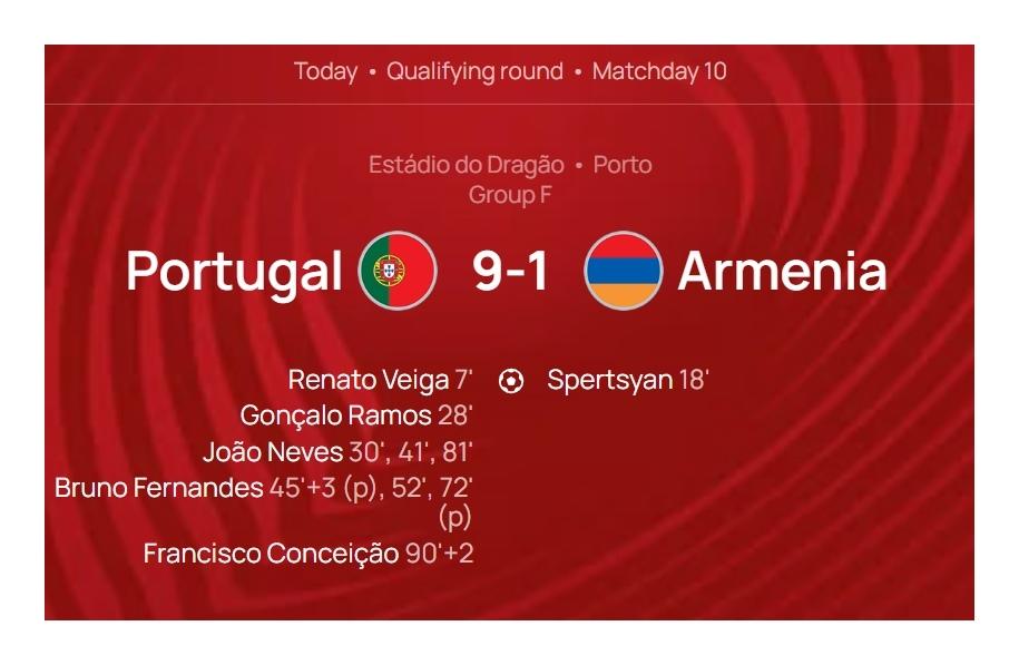 不想说缺谁谁尴尬!虽然这场葡萄牙的对手实力比较弱,但确实是踢出了队史9-1的第二高比分。而且这场比赛队内中前场配合确实是流畅多了!B费和若昂内维斯同时上演帽子戏法,而且还有直接任意球破门这种!!! 不说队友在“针对”c罗,但确实是葡萄牙队内表现更好,尤其是b费今天踢得特别积极。现在不但让c罗的位置变得有点尴尬,而且给马丁内斯留下一个巨大难题:如何定位c罗在葡萄牙的位置?这个主教练一直都是没有任何主见的,他这几年任上一直不敢拿c罗开刀,现在到世界杯还有大半年时间,接下来他得头痛了!