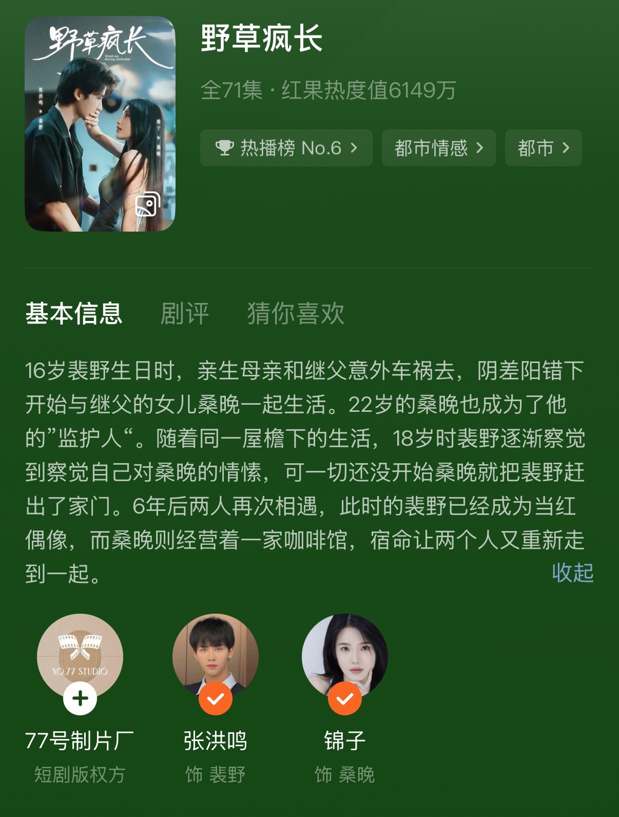 新婚慢熟好励志!短国有一个好的地方就是好本互传就会被大家看见。 第一天这本才4000,百名榜里看不到它,今天已爬到6110第七了! 我发的时候才5w收藏!现在已经快50w了! 野草疯长也过6000了!超过四头部的烟花了!短国现在这种细水长流精致的本子变多了。 支持这种好本子多来多来! 虽然可能还打不过一些下沉剧,但是随着短国观众盘越来越大,爱看这种上浮精致本的会越来越多! 这种观众是会随着大盘越增越多的!
