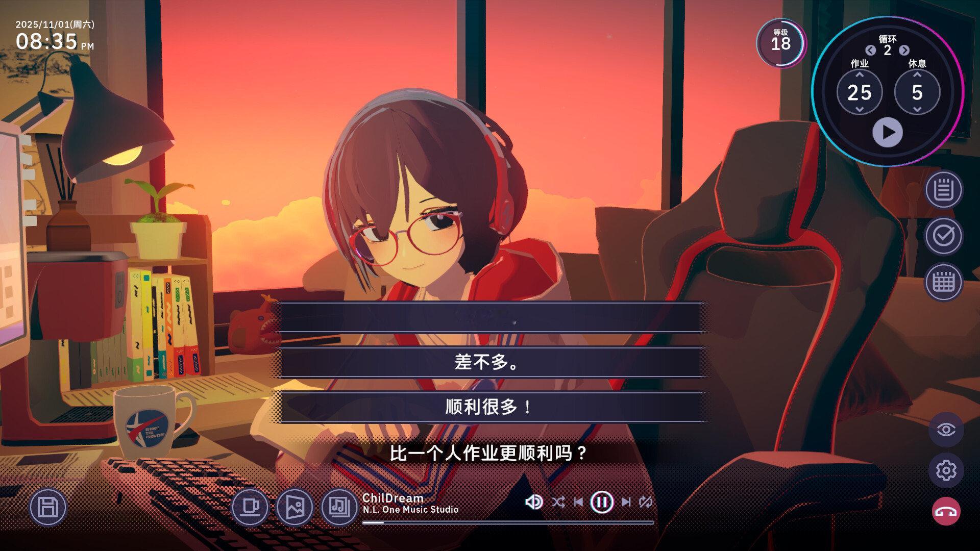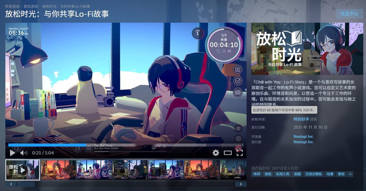工作陪伴有声小说游戏《Chill with You : Lo-Fi Story》已登陆,首发优惠折后31.2元,12月1日截止,支持中文,目前好评率为98%,收录69篇玩家评测。在游戏中你将与喜爱写小说、充满幻想的少女——聪音一起在书桌前工作。你可以自由定义那些展现聪音情感的Lofi音乐、环境音和风景,随着你投入更多时间与她共度,彼此的信任关系将逐渐加深,或许你们的心灵也能真正相通。