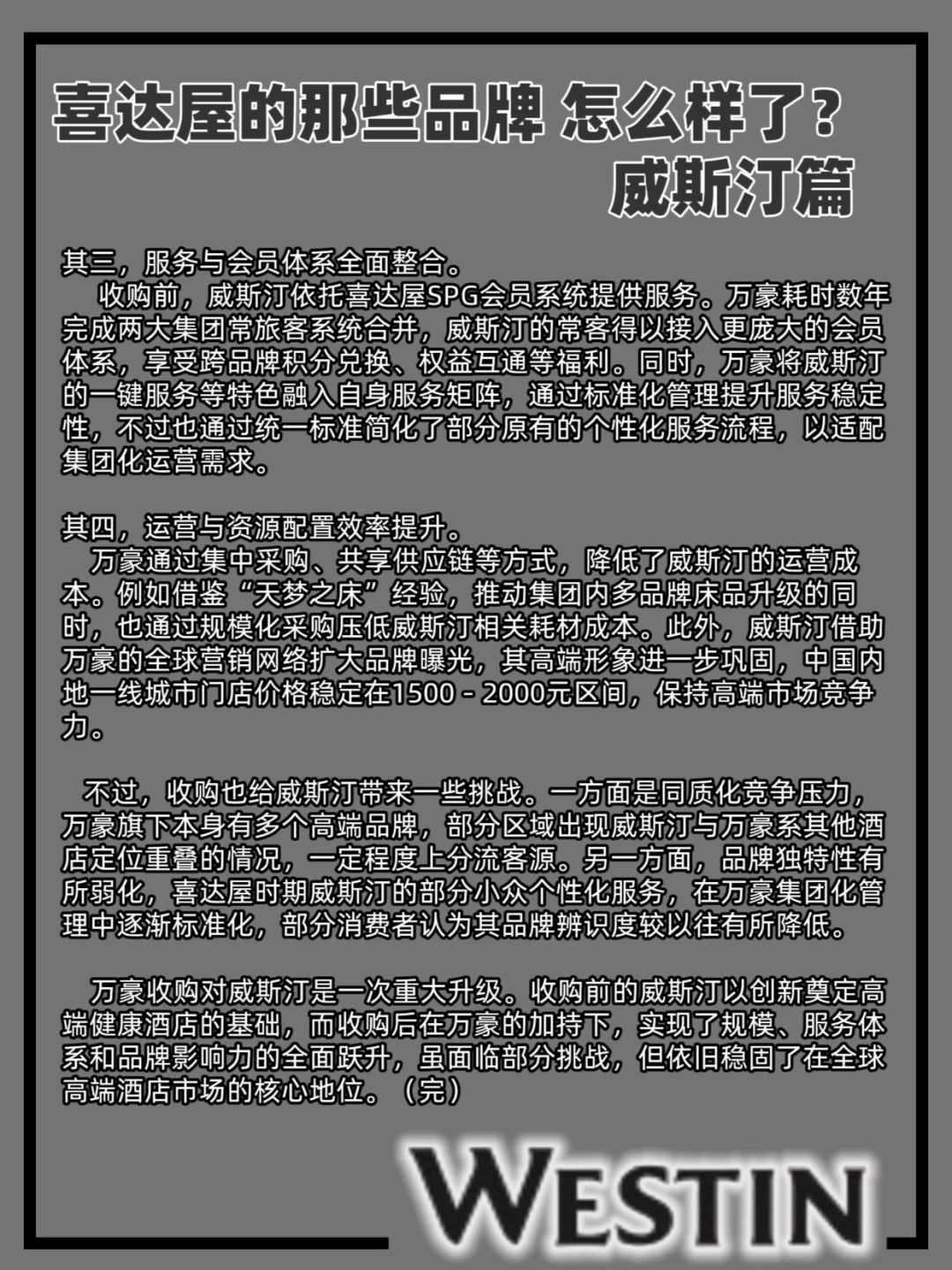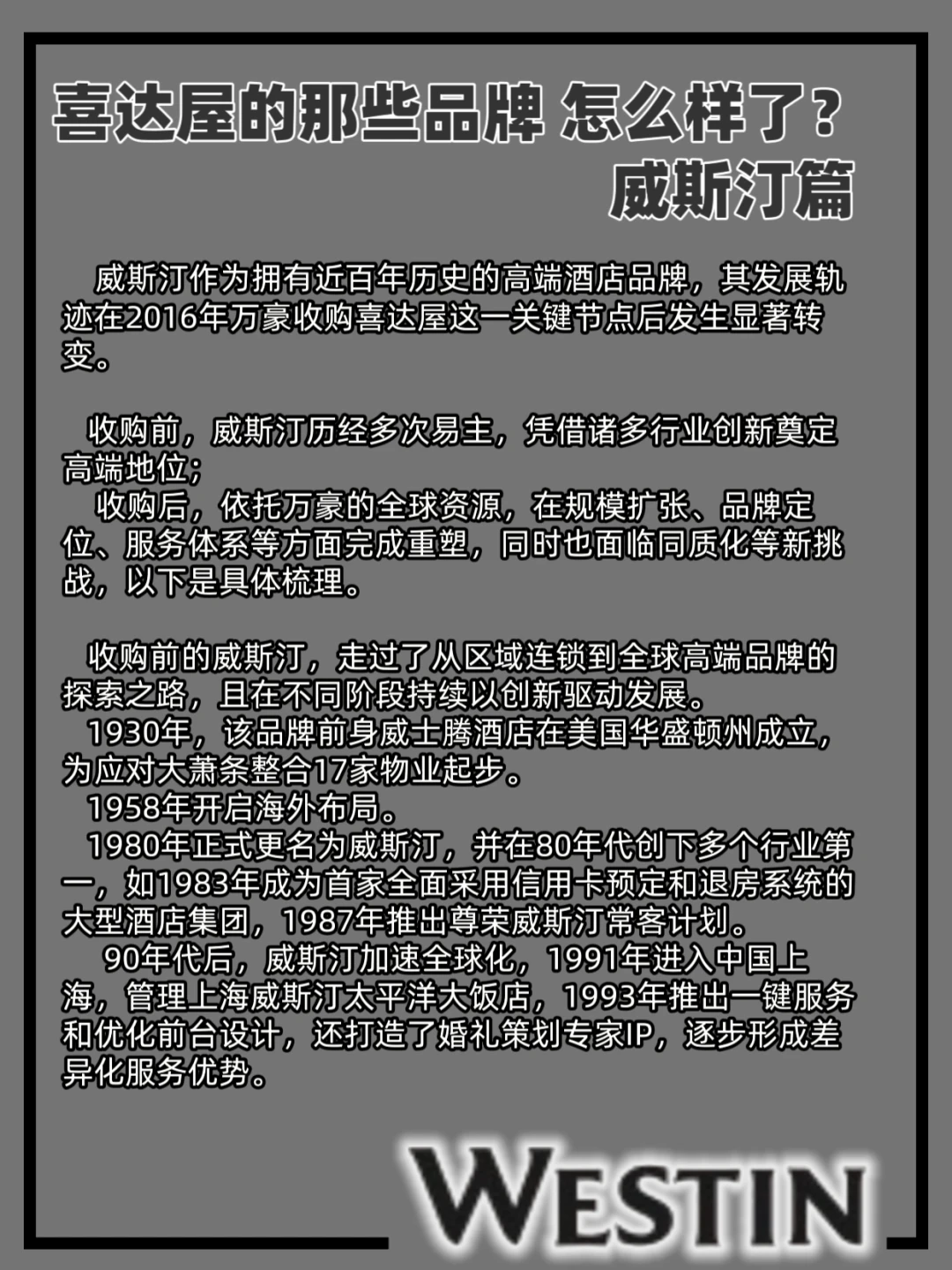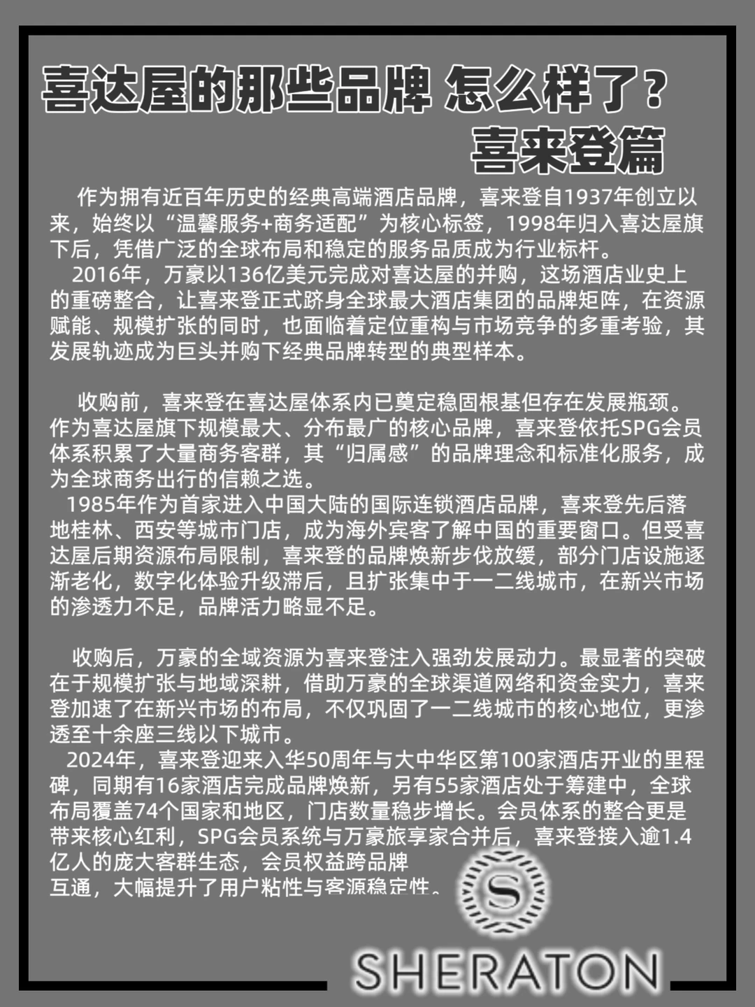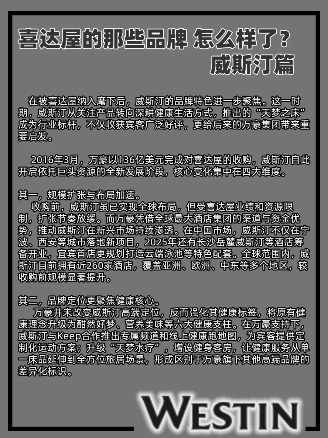 喜达屋旗下的11个品牌(瑞吉,W,豪华精选,臻品之选,威斯汀,艾美,喜来登,Design,福朋喜来登,雅乐轩,源宿)在十年前被万豪收购怎么样了呢?