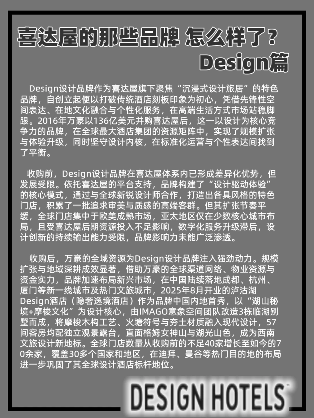 本期是5个高端品牌:威斯汀,艾美,喜来登,臻品之选,Design,属于中流砥柱。但不幸的是需要直面面对原先万豪集团的太子“万豪”领衔的万丽,傲途格,德尔塔的内部冲击。除了Design今年才在大陆本土开始第一家,其他品牌的变化是肉眼可见的!