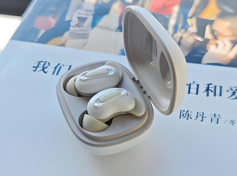 耳机外形类似蚕豆,单只仅 3.3 克,戴在耳朵上很轻,基本感觉不到重量。搭配的硅胶耳帽比较柔软,连续戴近两小时,耳朵也不会有明显胀痛。但因为没有耳翼和额外支撑,日常走路、轻微活动时佩戴还算稳,要是大幅度跑动、摇头,耳机容易松动,不太适合剧烈运动时戴。它配备 6mm 动圈单元,中高频比较清晰,人声和乐器声表现正常,高音不刺耳。低音表现普通,力度和下潜都一般,听节奏感强的音乐不够饱满,日常听播客、轻音乐完全够用。