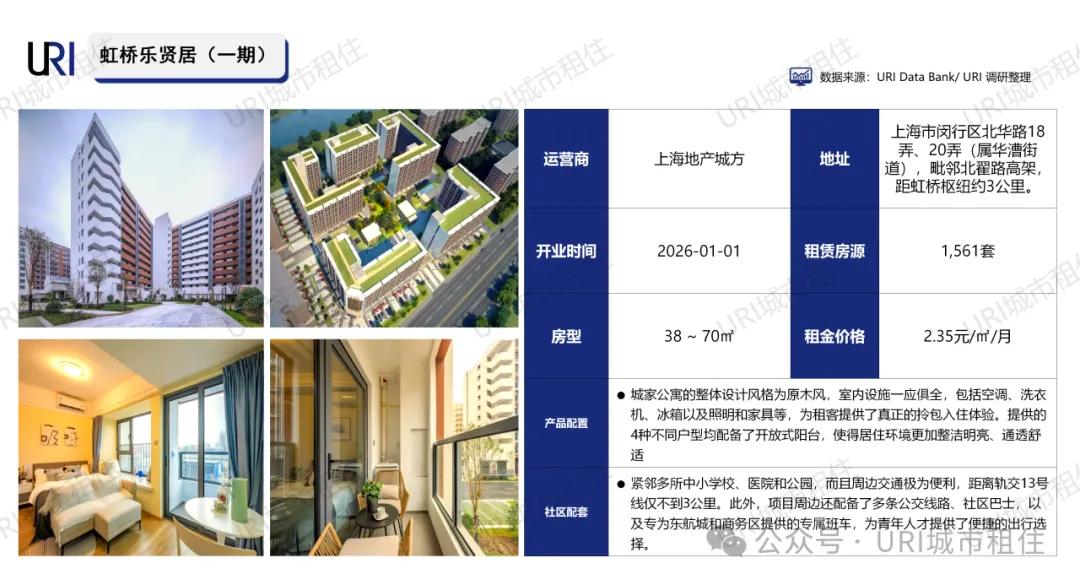 上海地产集团租赁住房战略的品牌项目,也是虹桥商务区重点打造的人才公寓。一期为市筹公共租赁住房,主要面向注册地或办公地在虹桥商务区内的企业出租;二期为虹桥乐贤居城家公寓,由上海地产集团和华住集团合作打造的保障性租赁住房项目。