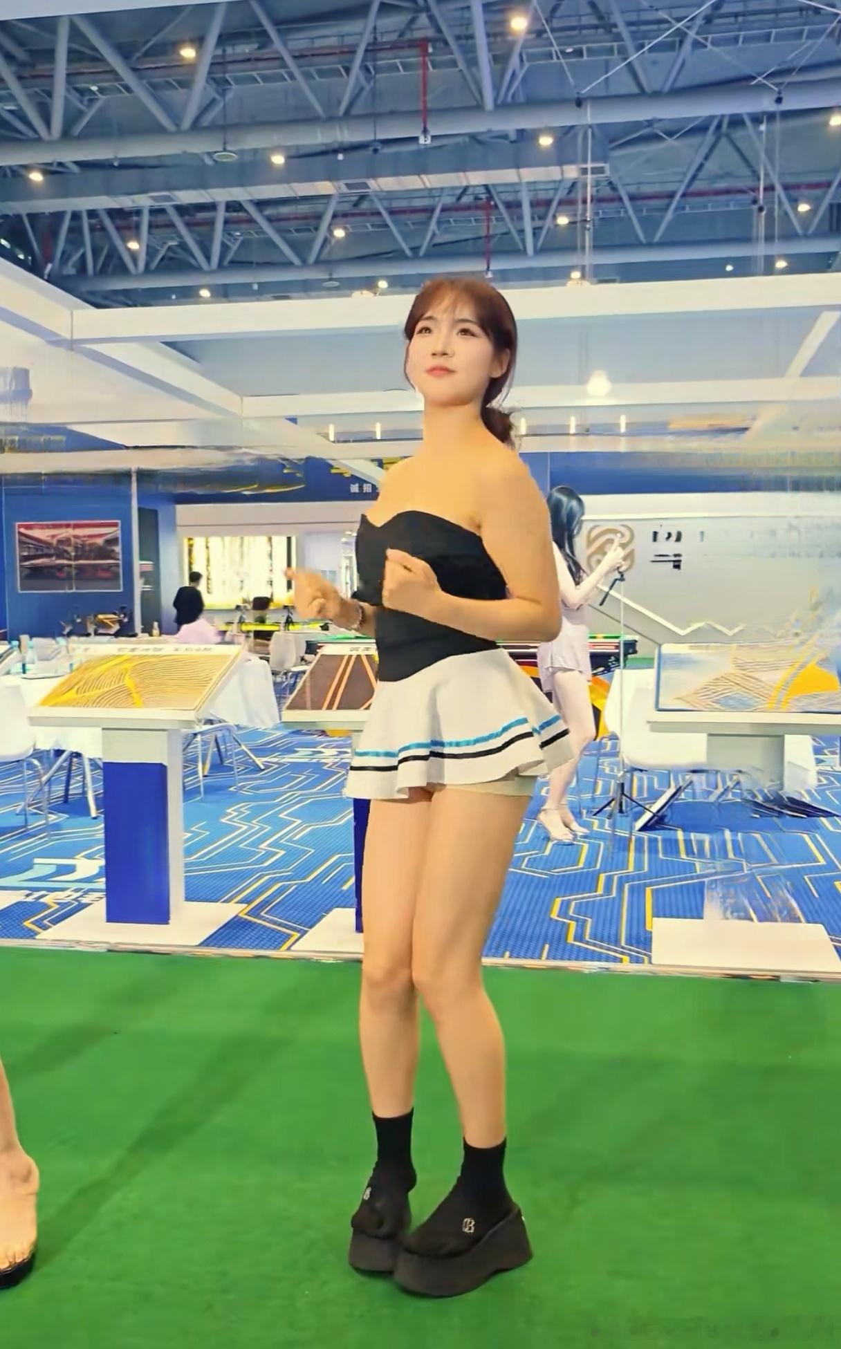 短发模特,晶莹剔透,不一定要长发及腰才是顶流,这样的车展模特,长相甜美,比例绝佳