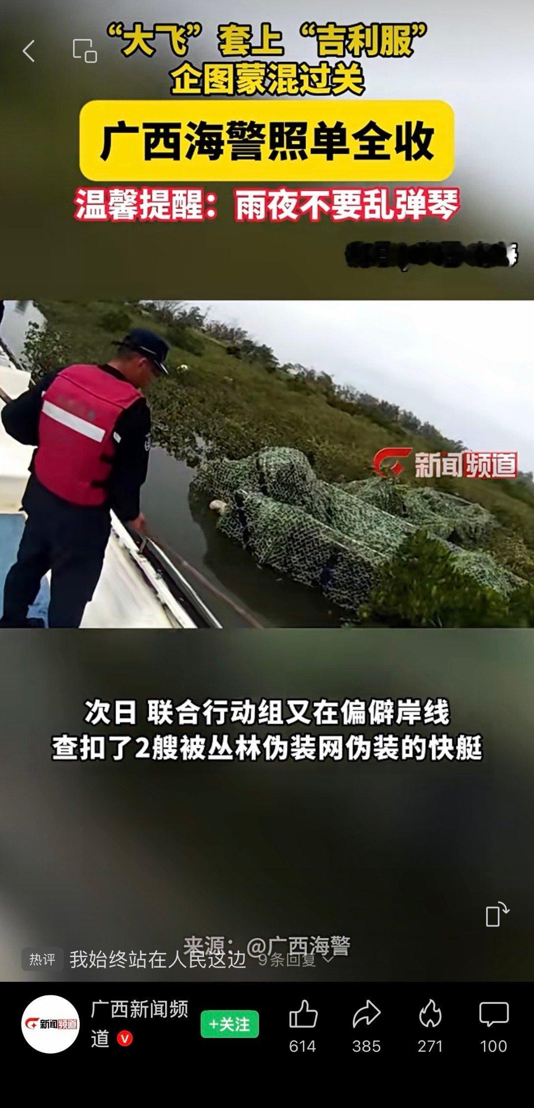 无人机破获大飞伪装隐蔽点广西海警温馨提示:雨夜不要乱弹琴甚至这条新闻的配乐就是雨夜钢琴
