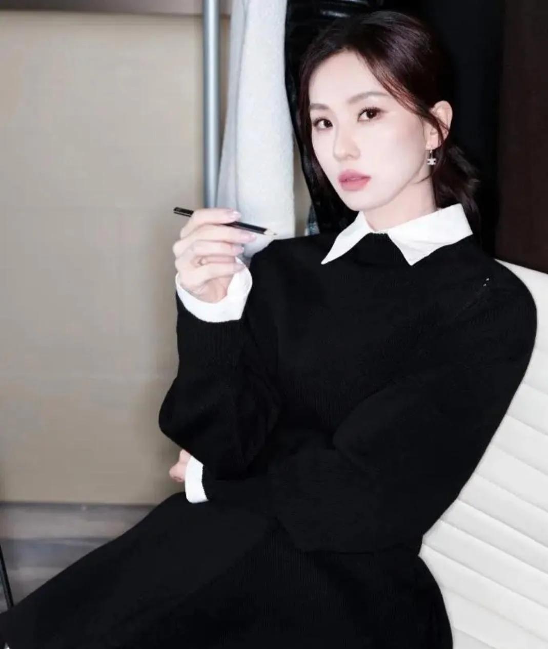刘诗诗新造型太会了!黑白叠穿玩出清冷精致感 谁能不爱刘诗诗的穿搭品味!一身黑色针织裙叠搭白色衬衫领,简直是“利落温柔风”的教科书级示范~