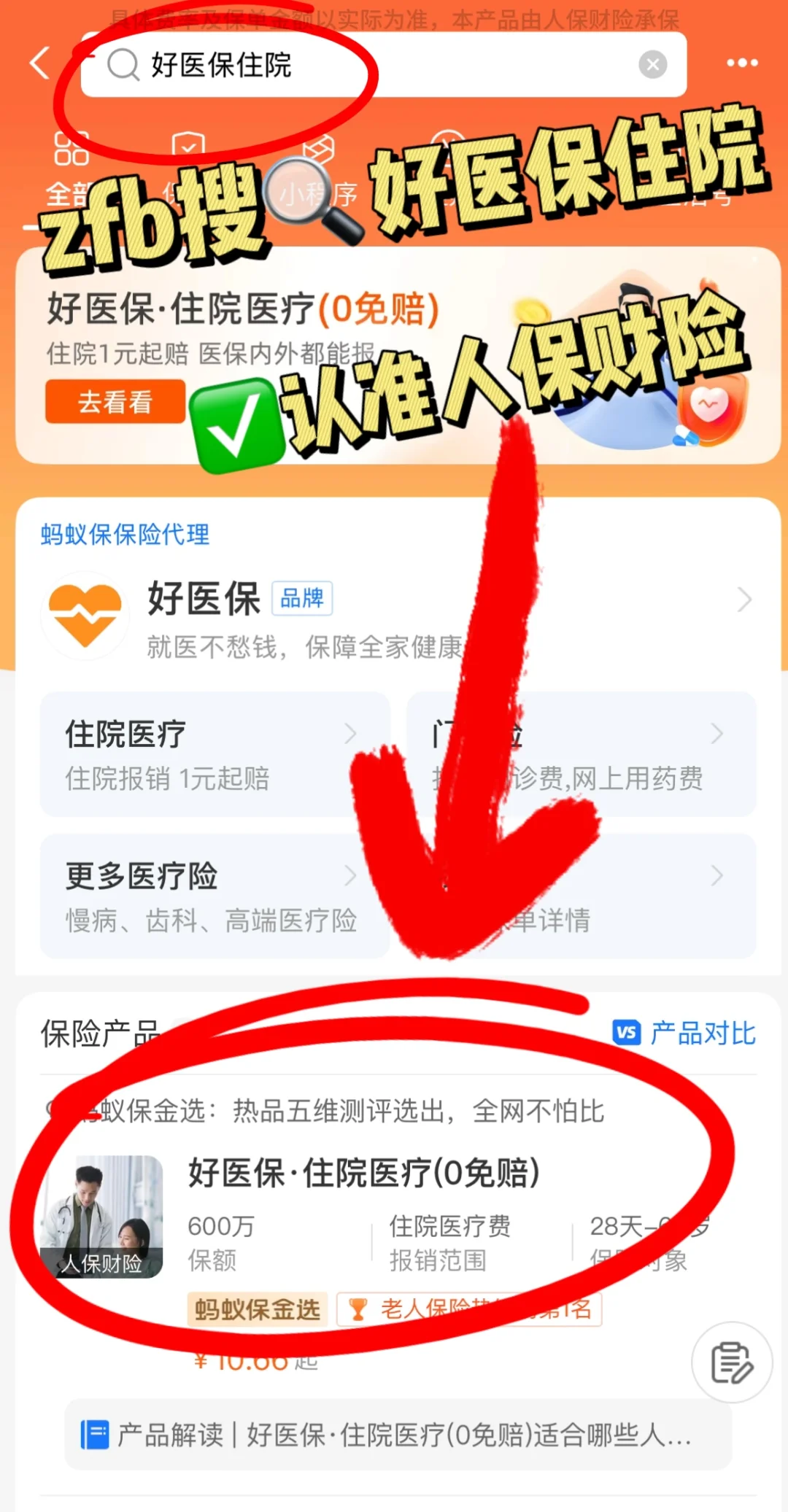 大家可以去支付宝搜索“好医保住院”,记得认准人保财险承保的,为自己的买份心安吧~